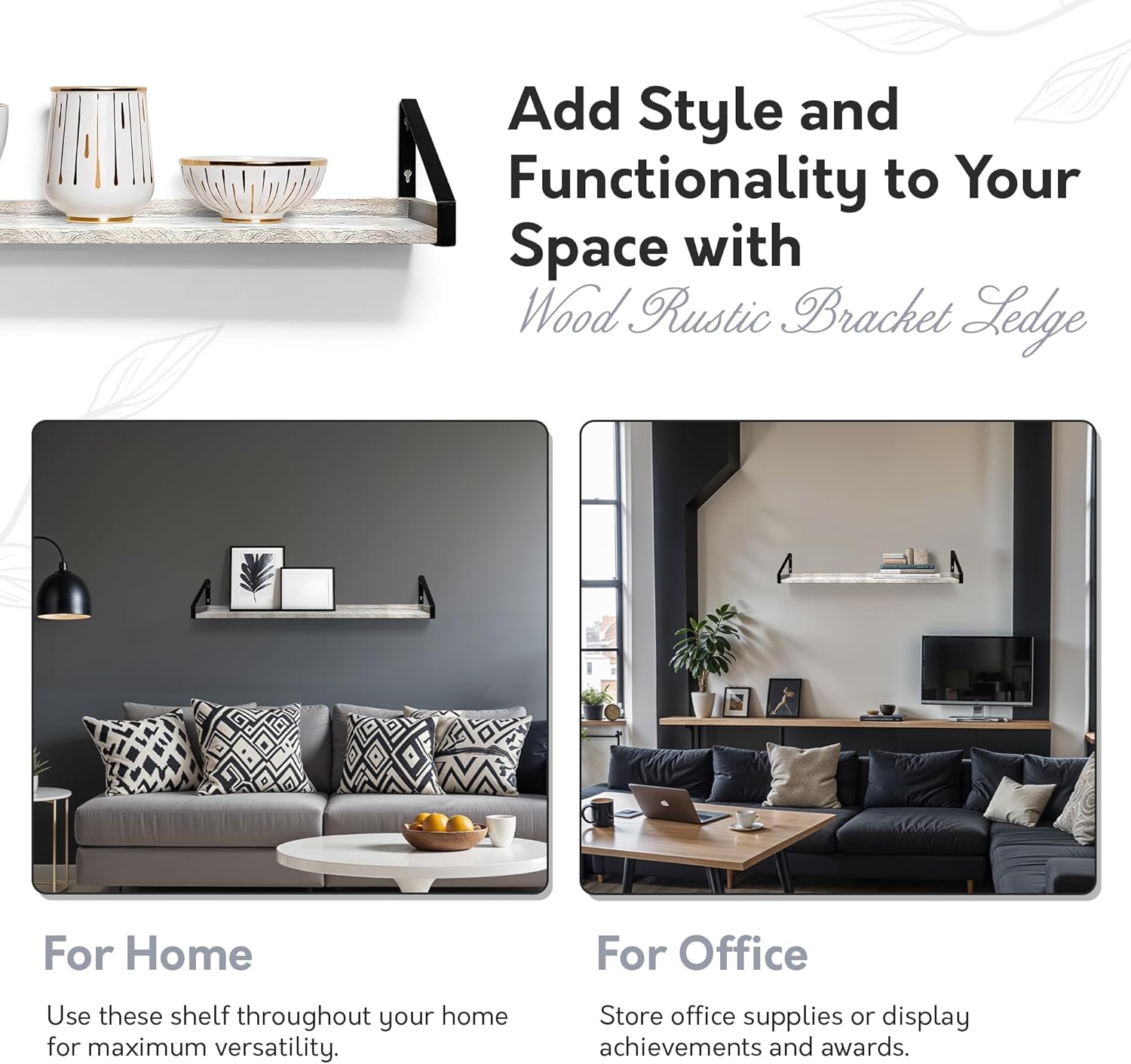- RUSTIC MEETS MODERN The industrial brackets and sleek design make this white floating shelf a perfect fit for minimalist, farmhouse, or modern home decor themes.