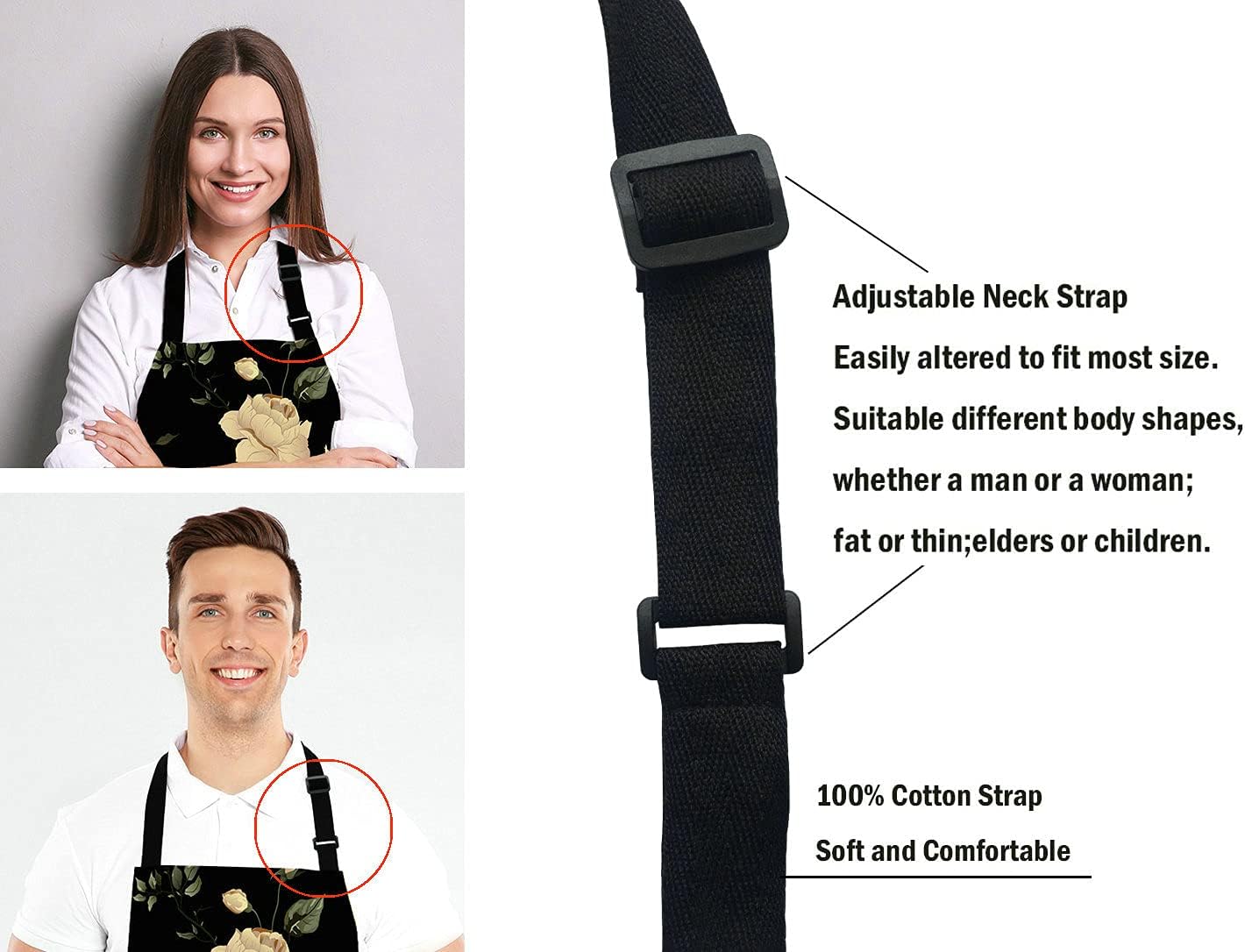 Watercolor Floral Pattern with of Roses Adjustable Bib Apron Kitchen Cooking Baking Gardening Apron for Women Men