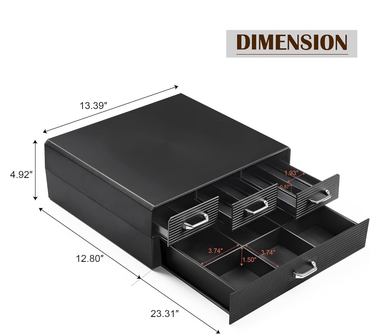 - Sleek Design: Mirror-finish handles; simple black appearance; smooth drawer-pulling even with a coffee machine on it.This black coffee pod organizer is a nice choice for your modern kitchen.