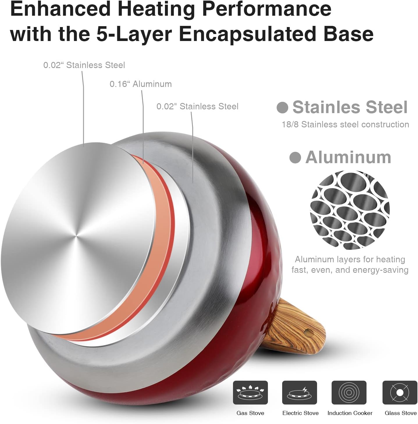 - [ Apply to Various Stovetops ] Applicable for induction cooker, electric furnace, gas, and natural gas stovetops. Please use the tea kettle over small or medium heat, it heats very fast and saves energy. If you meet any problems, please contact us and we will help you fix your issue.