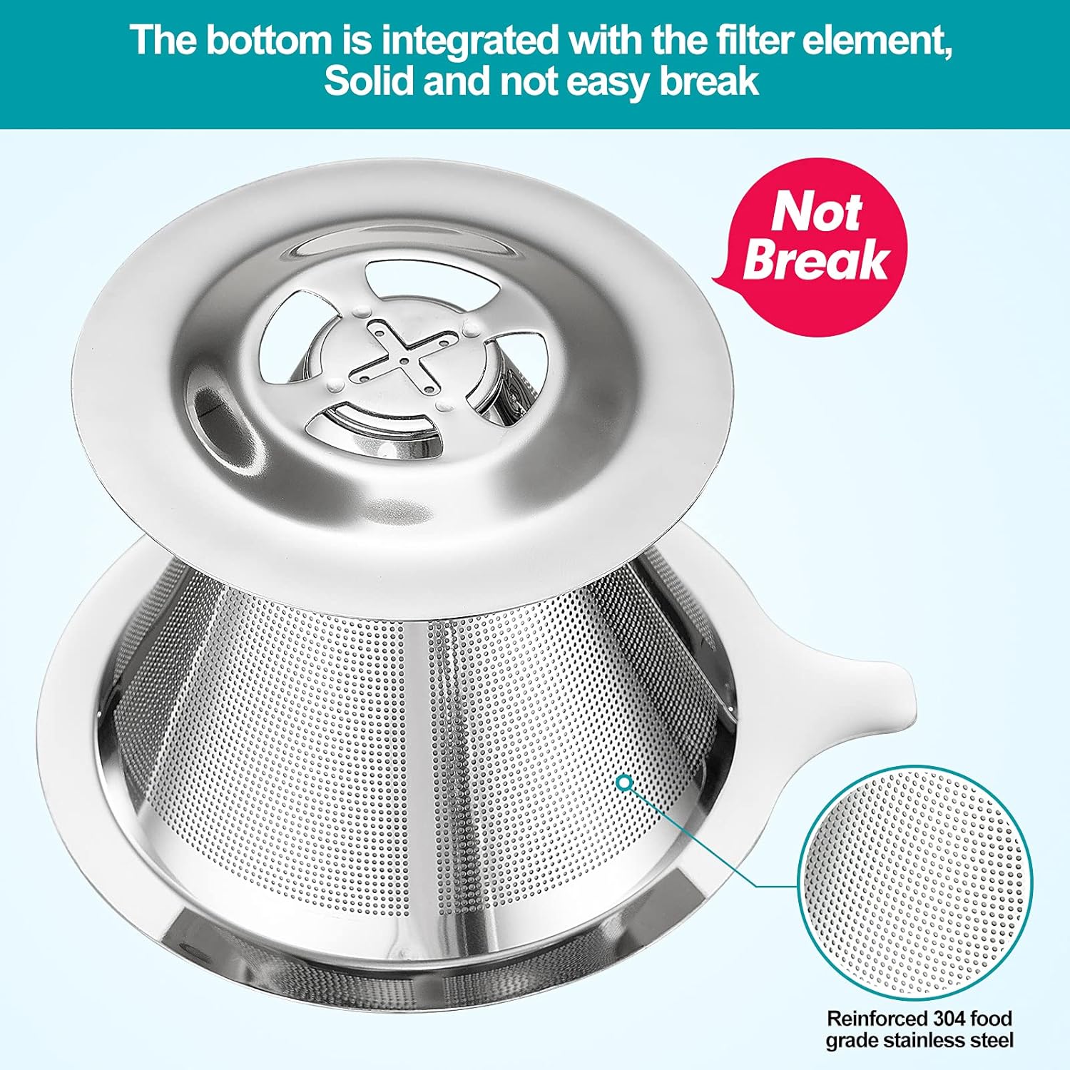 Pour Over Coffee Dripper, Slow Drip Paperless Coffee Filter, Stainless Steel Pour Over Coffee Maker for Single Cup Brew, Double Mesh Design of Manual Reusable Cone Filter.