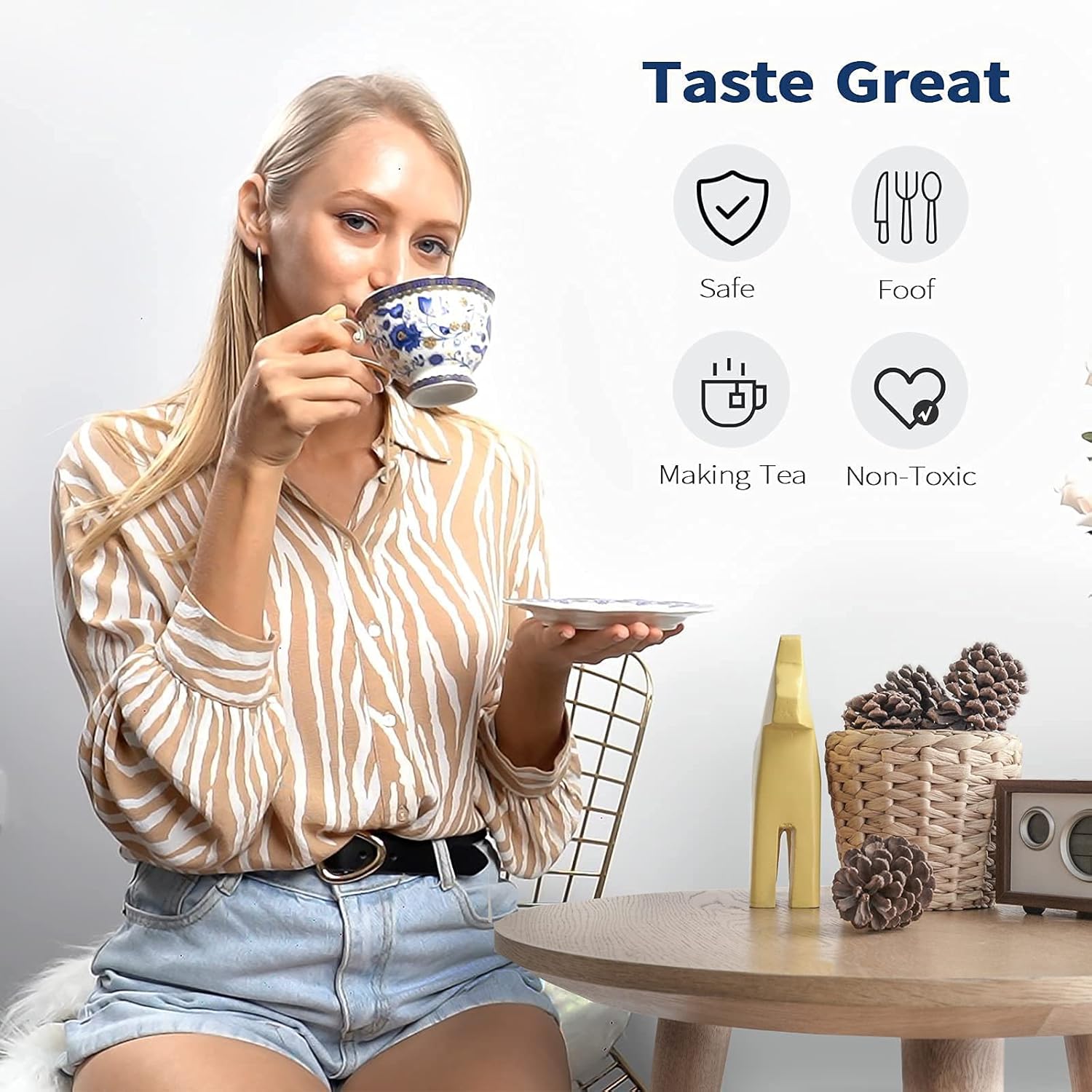 - Tea Cup and Saucer Set for 1: This vintage tea cups made of high quality bone china, bone china tea cup keeps beverages warm for longer periods and enhances the taste of coffee or tea. It's perfect for one person use or as a gift for a friend