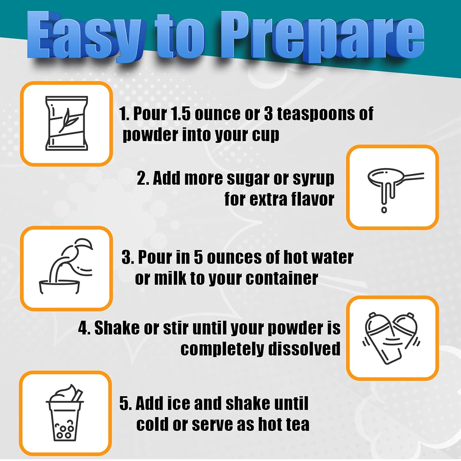 Fusion Select 2.2lb Tea Powder Blueberry Tea Flavored-3-in-1 Drink Powder with Cream & Sugar - Instant Pre-Mixed Beverage for Hot or Cold Blends or Yummy Frappes