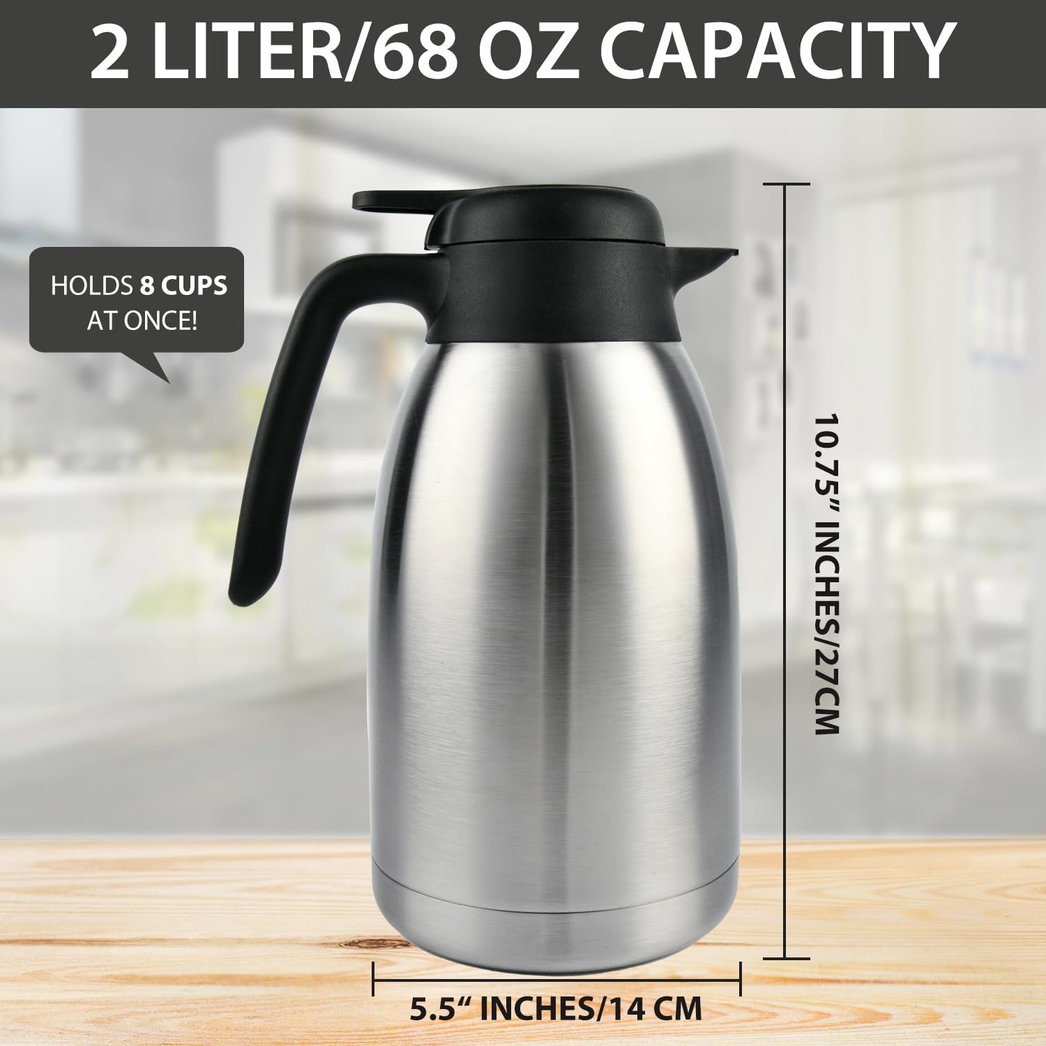 - Large Capacity: Holds up to 2 liters (50 ounces), perfect for serving multiple cups of coffee or tea.