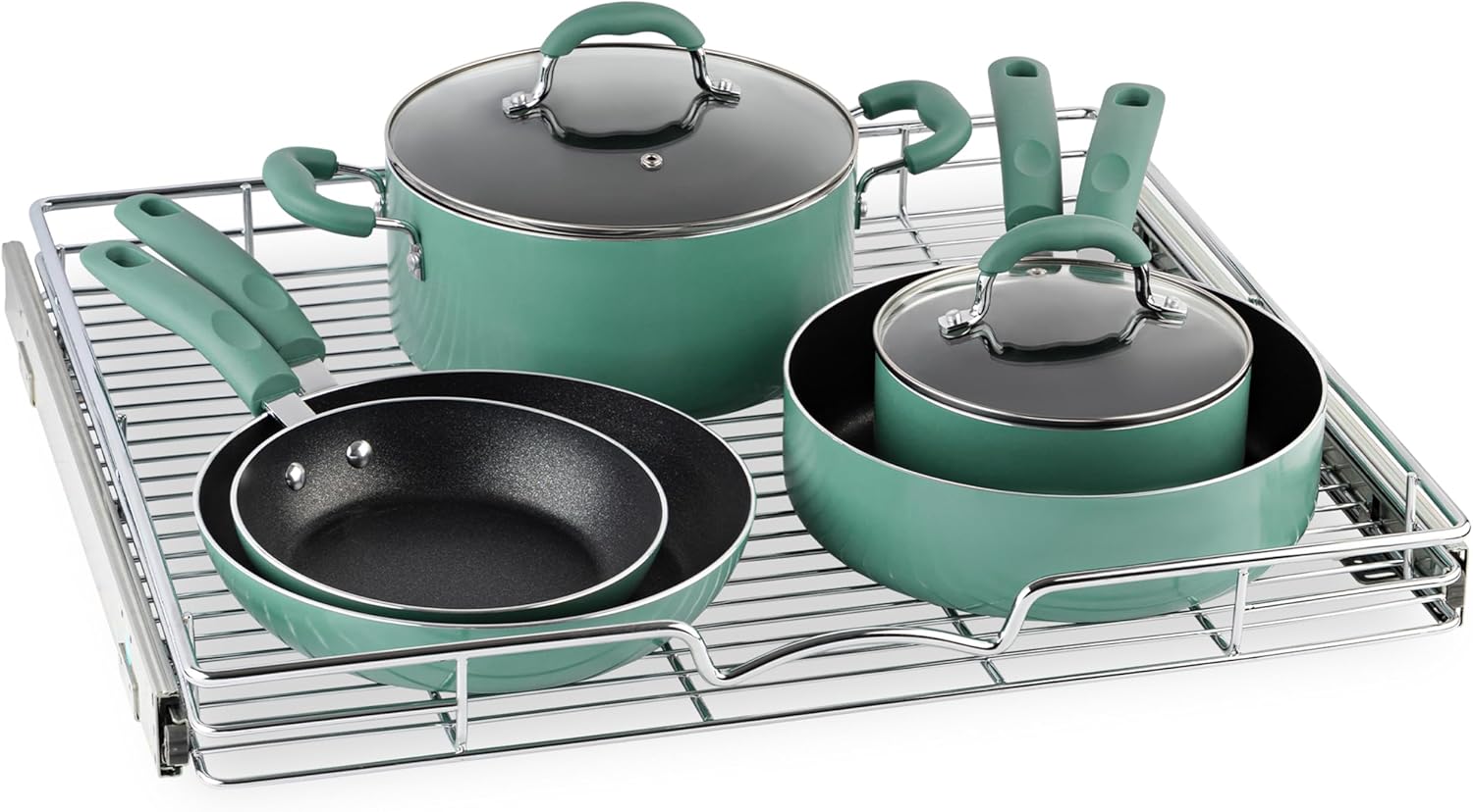 - LARGE CAPACITY CABINET DRAWERS SLIDE OUT: Sliding cabinet shelf dimensions are 22”W x 17”D x 3.25” and includes step by step instructions with all necessary hardware.