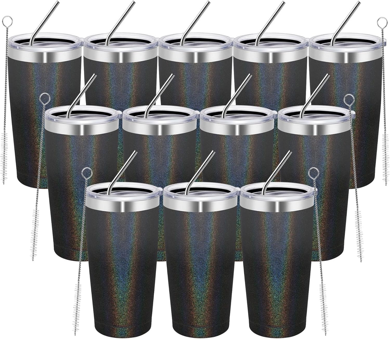 - [Package included]12*20 oz glitter tumbler,12*splash proof cover with hole, 12*bent stainless steel straw, 6*straw brush