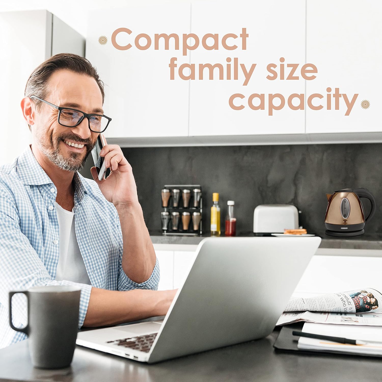 Moss & Stone 1.2L Stainless Steel Small Electric Kettle, Cordless 1500w Fast Boiling Pot, Portable Hot Water Electric Tea Kettle With Boil Dry Protection & Auto Shut-Off (Champagne)