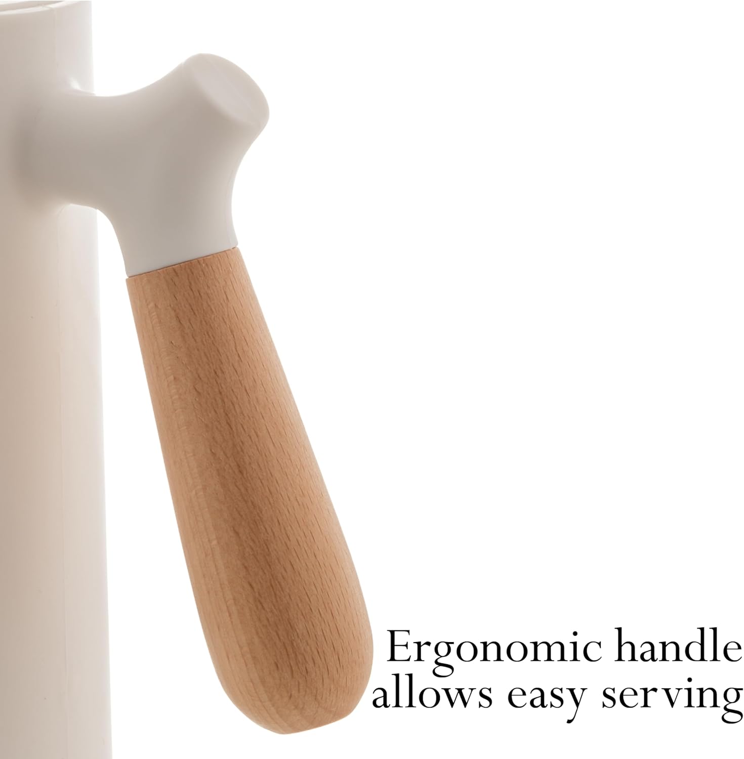 WOLFF - White Thermal Coffee Carafe – 34oz / 1L Insulated Carafe - Food-Safe Plastic Exterior and Glass Liner, Wood-Style Handle – Keeps Drinks Hot or Cold, Leakproof Coffee and Tea Dispenser