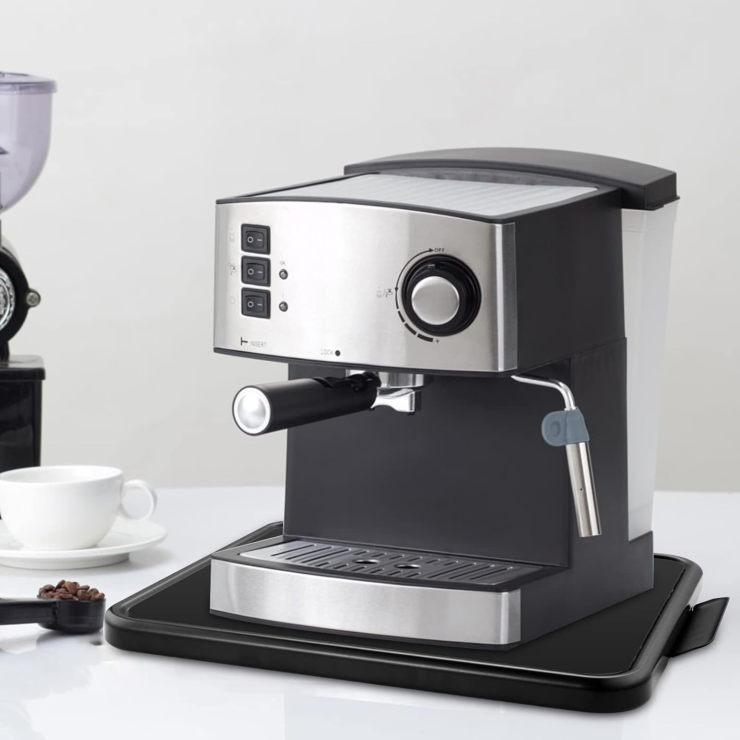 - ---Premiunm Materials---Our coffee maker sliding tray was made of high quality steel and metal parts with a Non-slip slicone pad on the surface to keep all your appliances in place and easy cleaning.