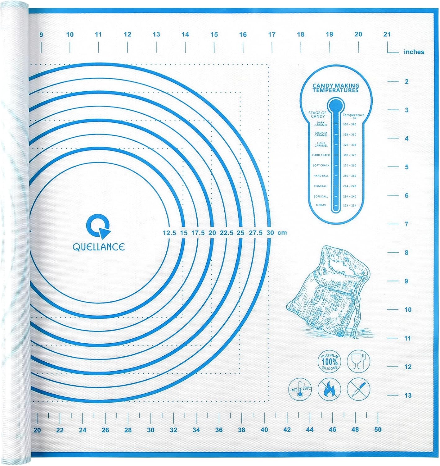 - FOOD GRADE SILICONE: silicone pastry mat made of 100% Food-Grade Silicone, no harm to the body, safe use for temperatures of -45 degrees F (-43 C) to 450 degrees F (230 C), no unpleasant chemical odors, providing you more time to enjoy your creations.