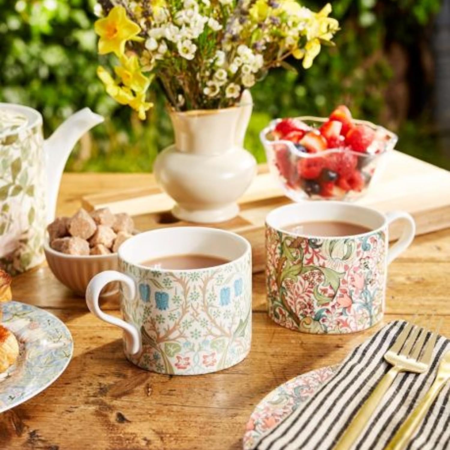 Spode Morris & Co Porcelain Mugs, Set of 2-12oz Microwave and Dishwasher Safe Tea & Coffee Cups for Kitchen Countertop or Home Brew Coffee Station, Great Gift for Mothers (Blackthorn & Golden Lily)