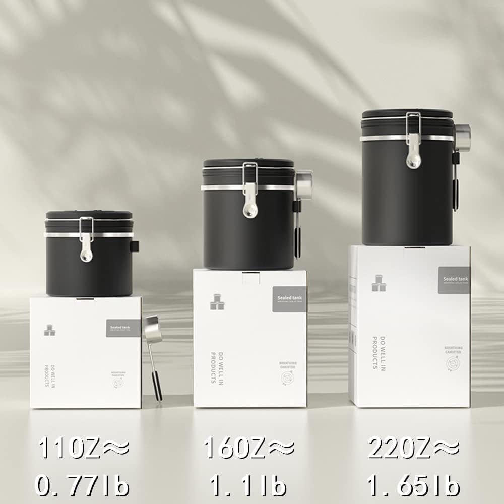 - 【STAINLESS STEEL COFFEE CONTAINER】Made from high-quality 304 stainless steel, the opaque body creates an ideal environment for storing coffee beans. The canister blocks out light and moisture to protect your ingredients—whether they’re coffee beans, dried nuts, or other pantry staples.Its robust construction offers long-lasting durability.