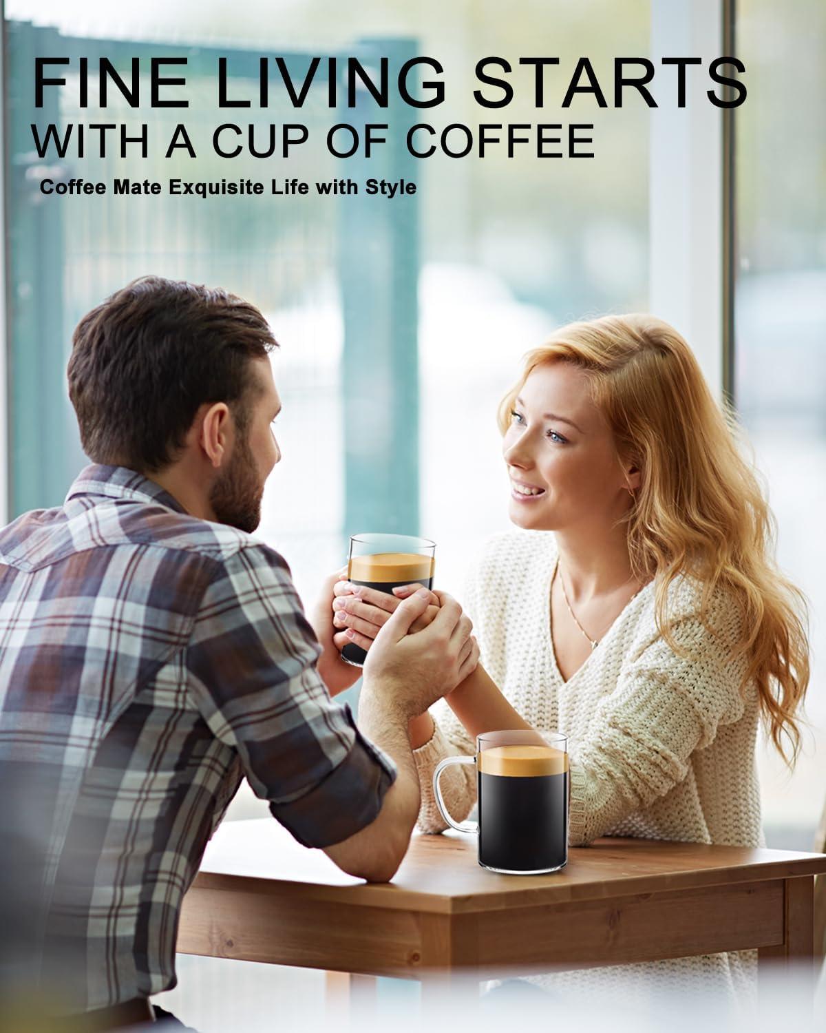 - MULTIFUNCTIONAL GLASS:Modern coffee mug gifts set,these mugs are crystal clear,light weight and the perfect size.Can be used for Capucinno cups,Lungo cups,Macchiato,Latte,Espresso cups,Demitasse cups,Tea,Smoothie,Drinking Glasses,Beers,Hot Chocolate,Mulled Cider and Juice,Perfect for hot or cold Drinks.