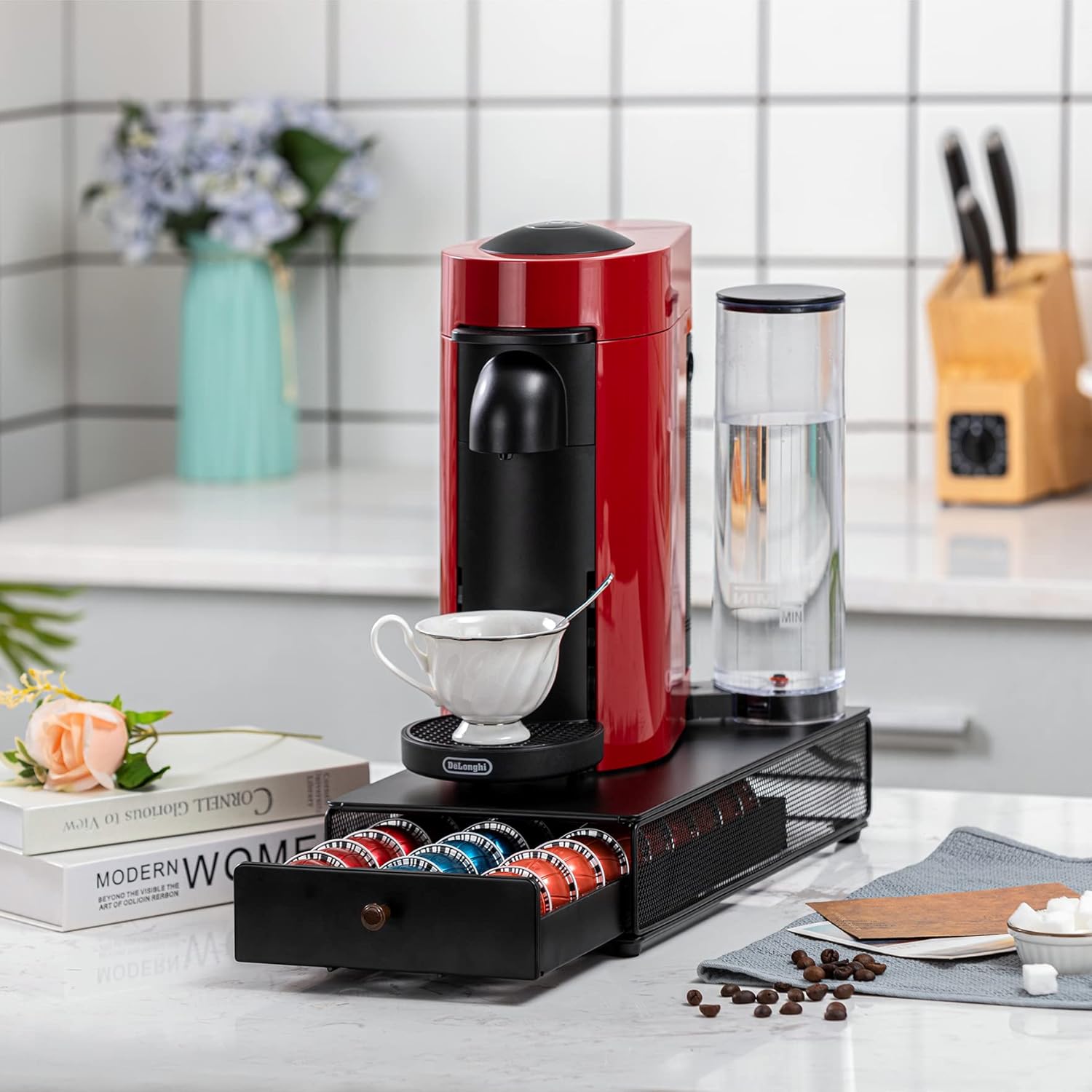 - [Save Your Time] 3 columns,10 vertuo capsule pods can be organized each columns. It can holds 3 boxes of complete vertuo capsule pods. To classify vertuoline pods of different taste and size quickly,the coffee storage drawer is your best assistant!