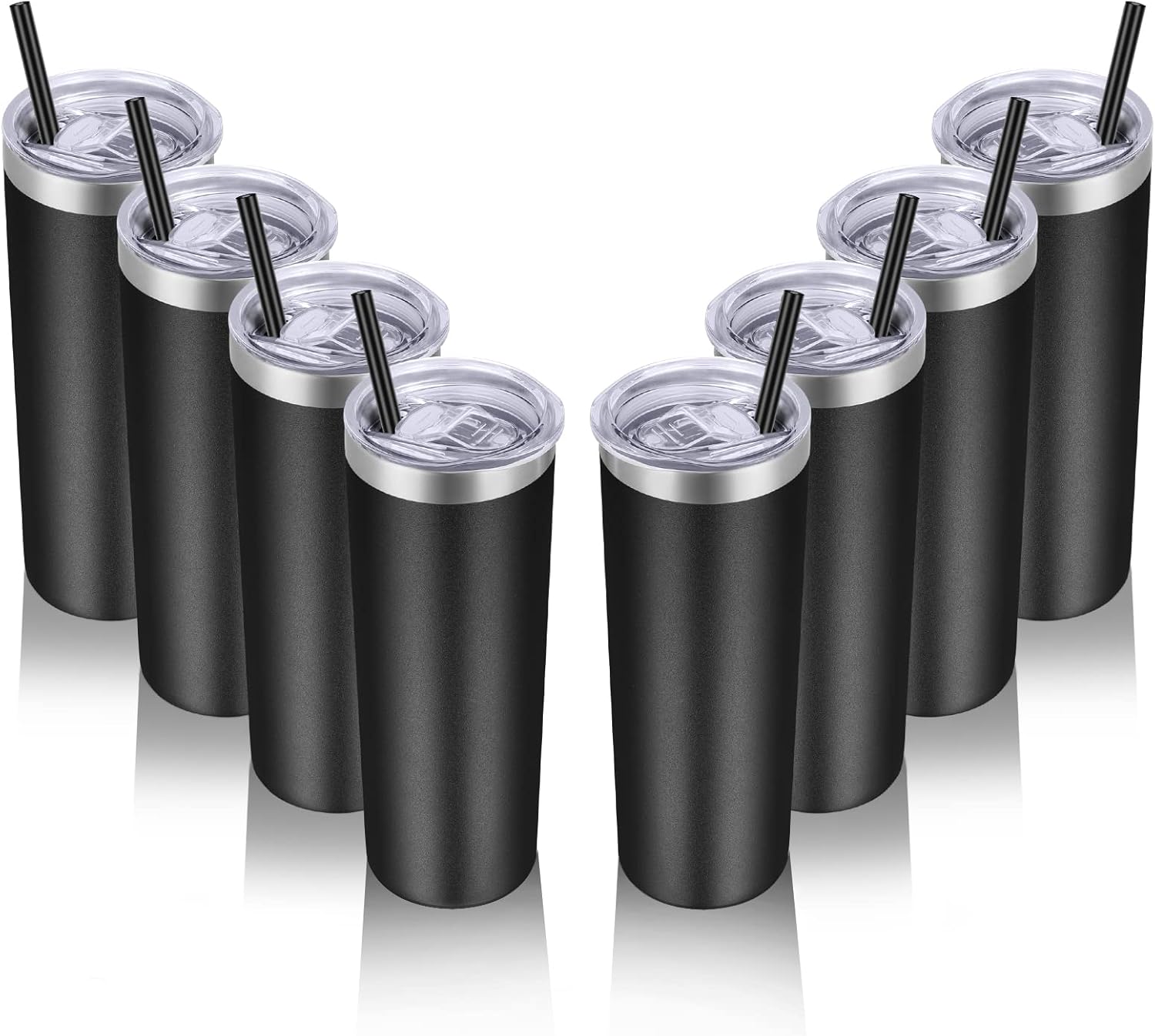 VEGOND Stainless Steel Tumblers Bulk 8 Pack, 20 oz Vacuum Insulated Skinny Tumblers with Lid and Straw, Double Wall Coffee Mug, Travel Water Cup, Black
