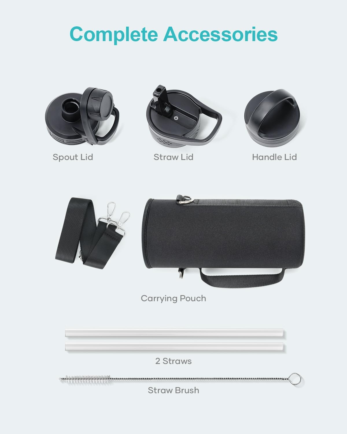 - Super Deal Combo: Buy 40 oz insulated water bottle, get 7 accessories. The pack includes 1 x carrying pouch, 3 x lids, 2 x straws, and 1 x straw cleaner. This bottle is ideal for camping, hiking, cycling, running, gym sessions, or outdoor work, ensuring you stay hydrated wherever you go.