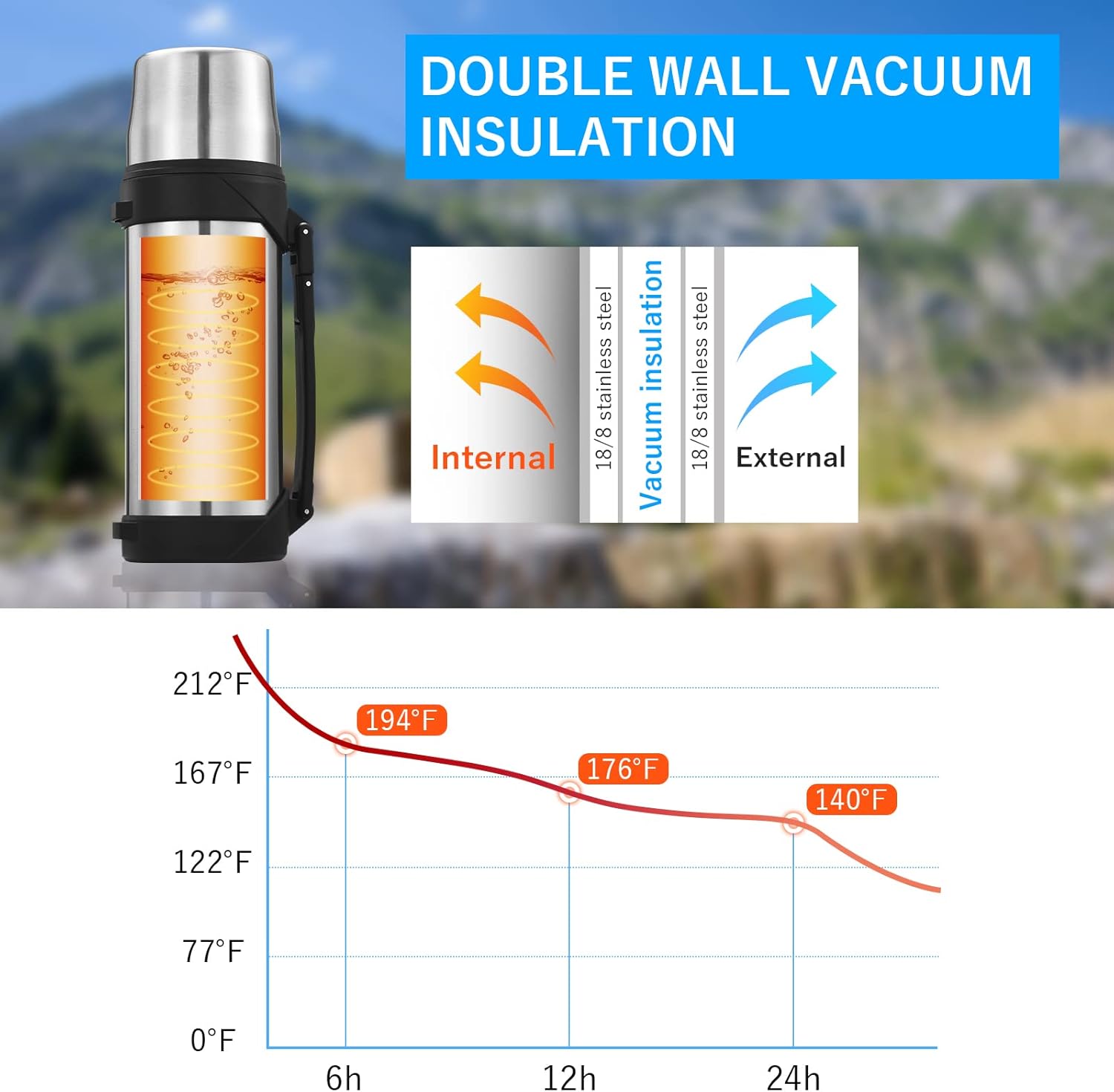 - 【Beautiful Appearance,Large Capacity】Coffee Thermos Has A Capacity Of 41 Ounce,Insulated Flask Can Meet The Requirements Of A Family,Making This Ideal For Any Picnic,Hike,Or Camping Trip.Thermos For Hot Drinks Beautiful Design,Bright Appearance Color,You'Ll Become The Most Popular Person At Any Tailgating Event.Termos Para Cafe,Vacuum Insulated Bottle