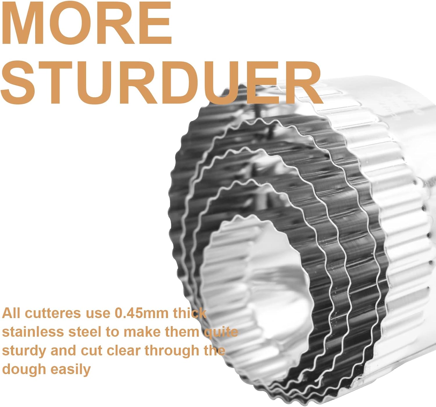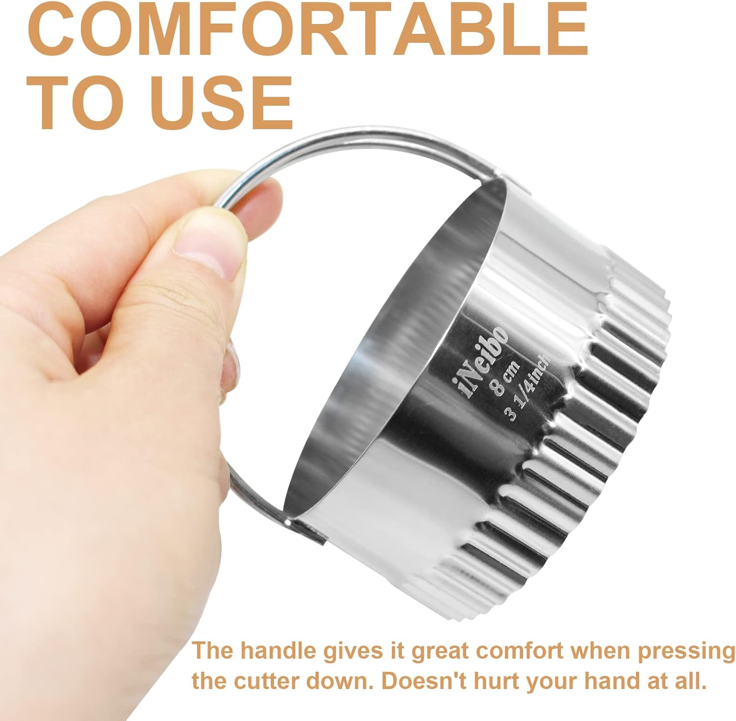 iNeibo Fluted Edge Biscuit Cutter Set - Round Circle Scone, Pastry, and Dough Cutters for Baking, Dumpling Skin, and Fondant