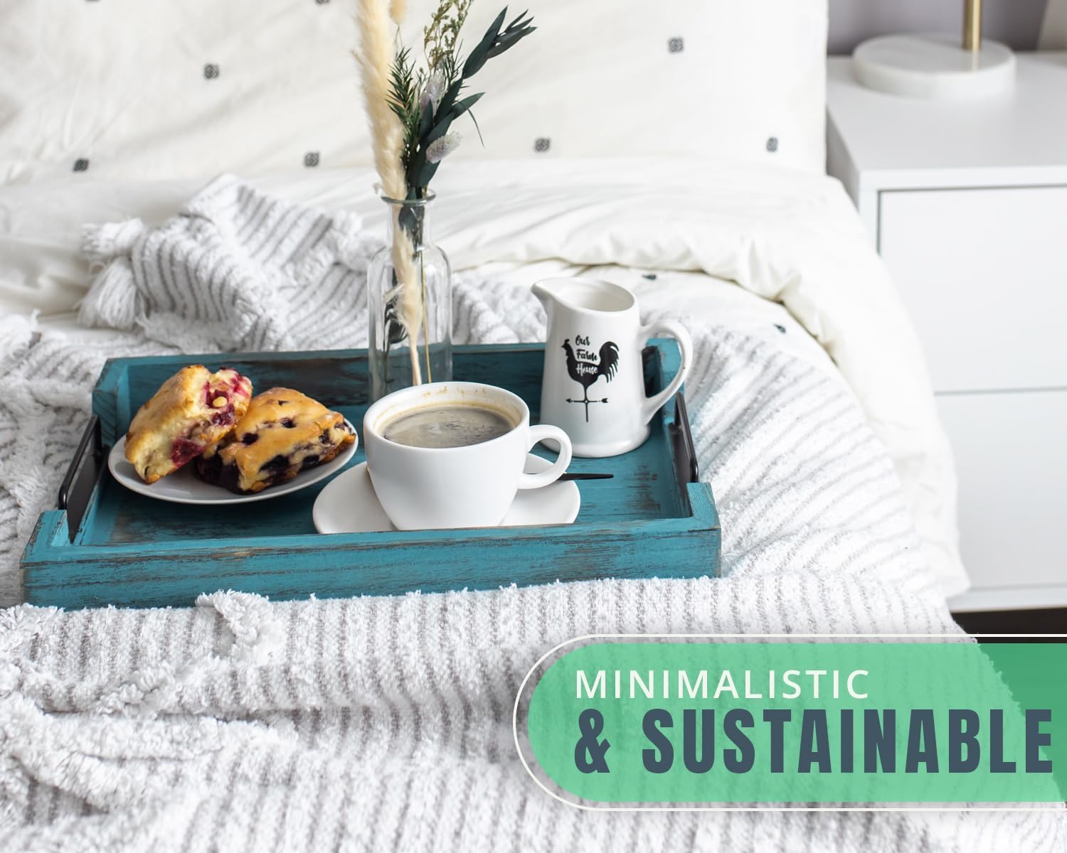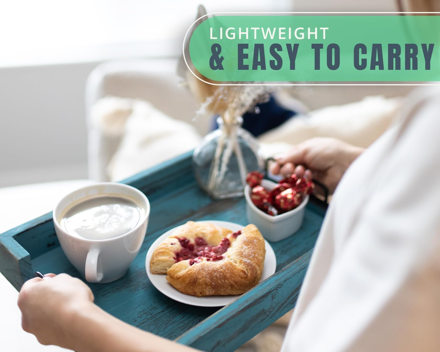 Rustic Wooden Serving Trays with Handle - Set of 2 - Large and Small, Nesting Multipurpose Trays - for Breakfast, Coffee Table/Butler & More - Rustic Blue