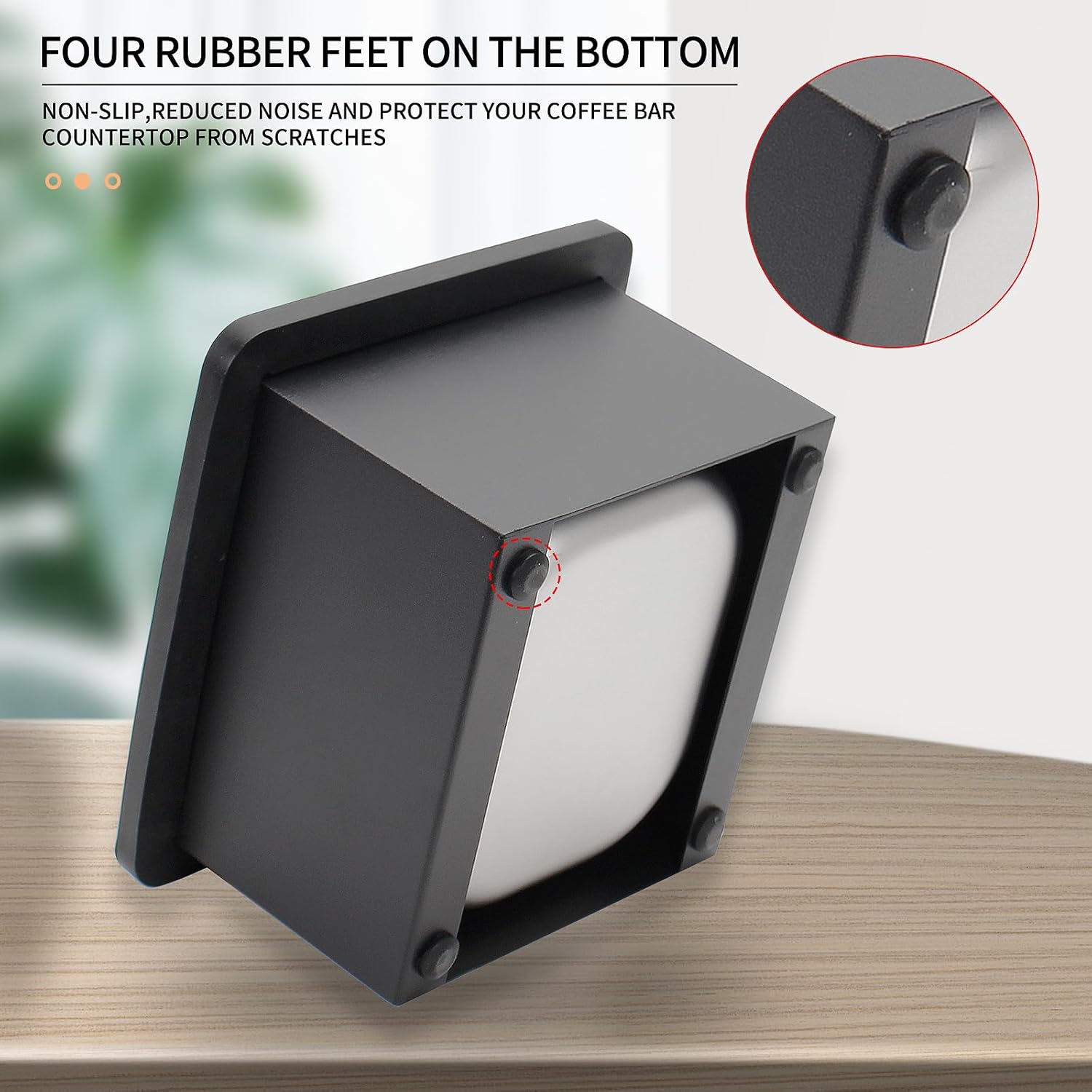 Espresso Knock Box,Stainless Steel Coffee Pucks Container, with Steel Holder and Noise Reduction Rubber Ring (7.28 x 6.8 x 4.25 inch)