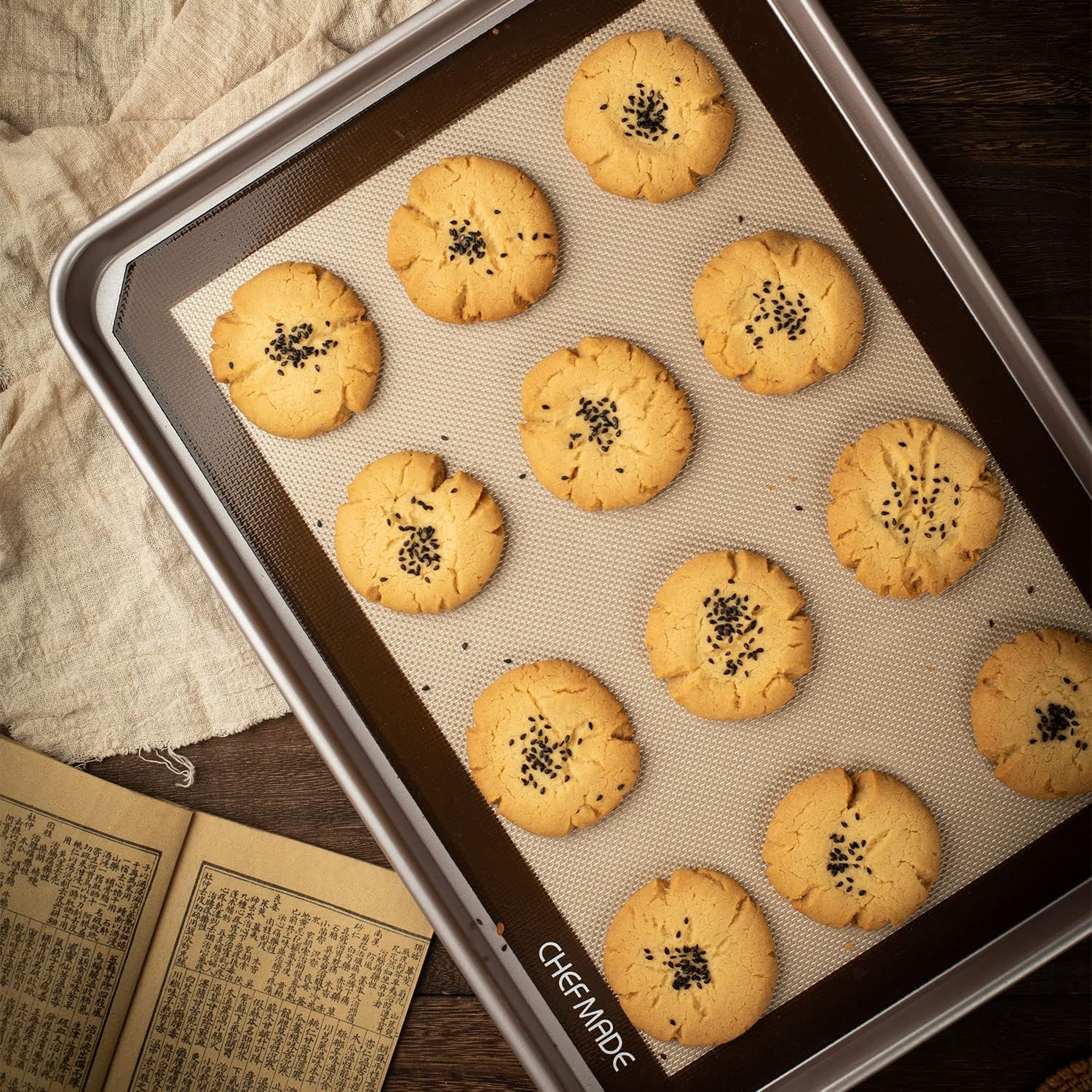 CHEFMADE 17-Inch Silicone Baking Mat with Measurements, Non-stick Heat Resistant Rolling Dough Mat, for Pastry,Pizza, Fondant and Pie Crust Making 11.7" x 16.7" (Brown)