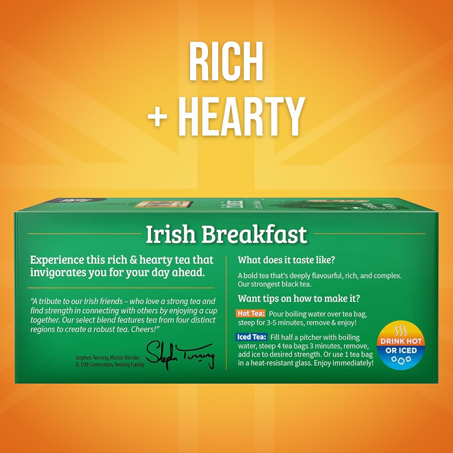 Twinings Irish Breakfast Black Tea Individually Wrapped Bags, 100 Count (Pack of 1), Flavourful, Bold, and Robust, Caffeinated, Enjoy Hot or Iced, 100 Teabags