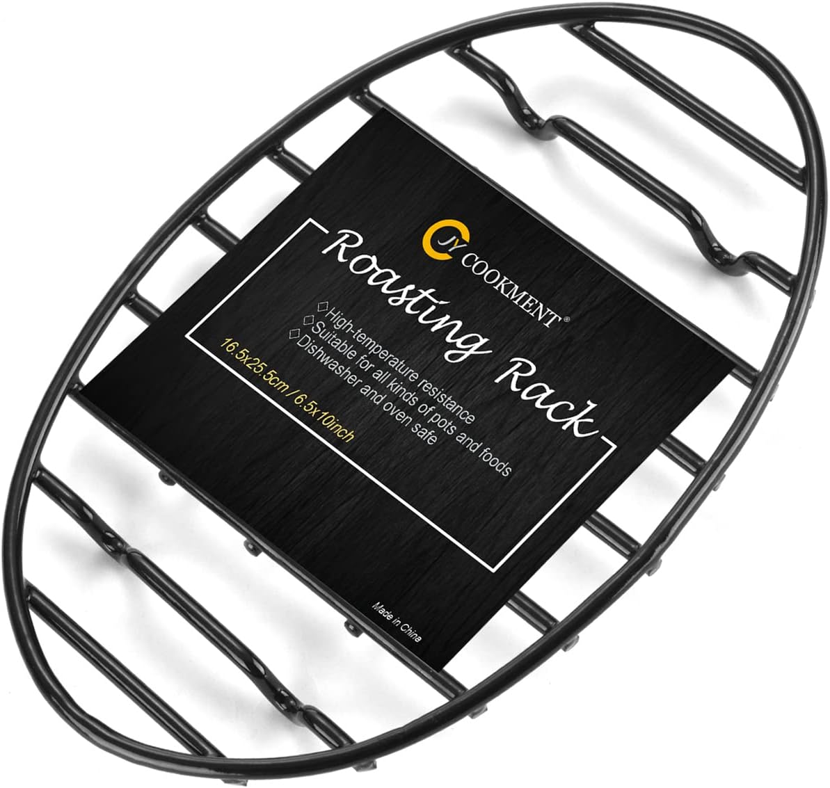 - [OVEN-SAFE, MULTI-USE DESIGN]: JY COOKMENT roasting rack is safe for oven-use up to 575℉; This cooling rack is designed for oven use so you can confidently roast, bake, grill, smoke, dry, and bbq; all this is possible due to the high heat tolerance of the 100% food grade enamel finished design