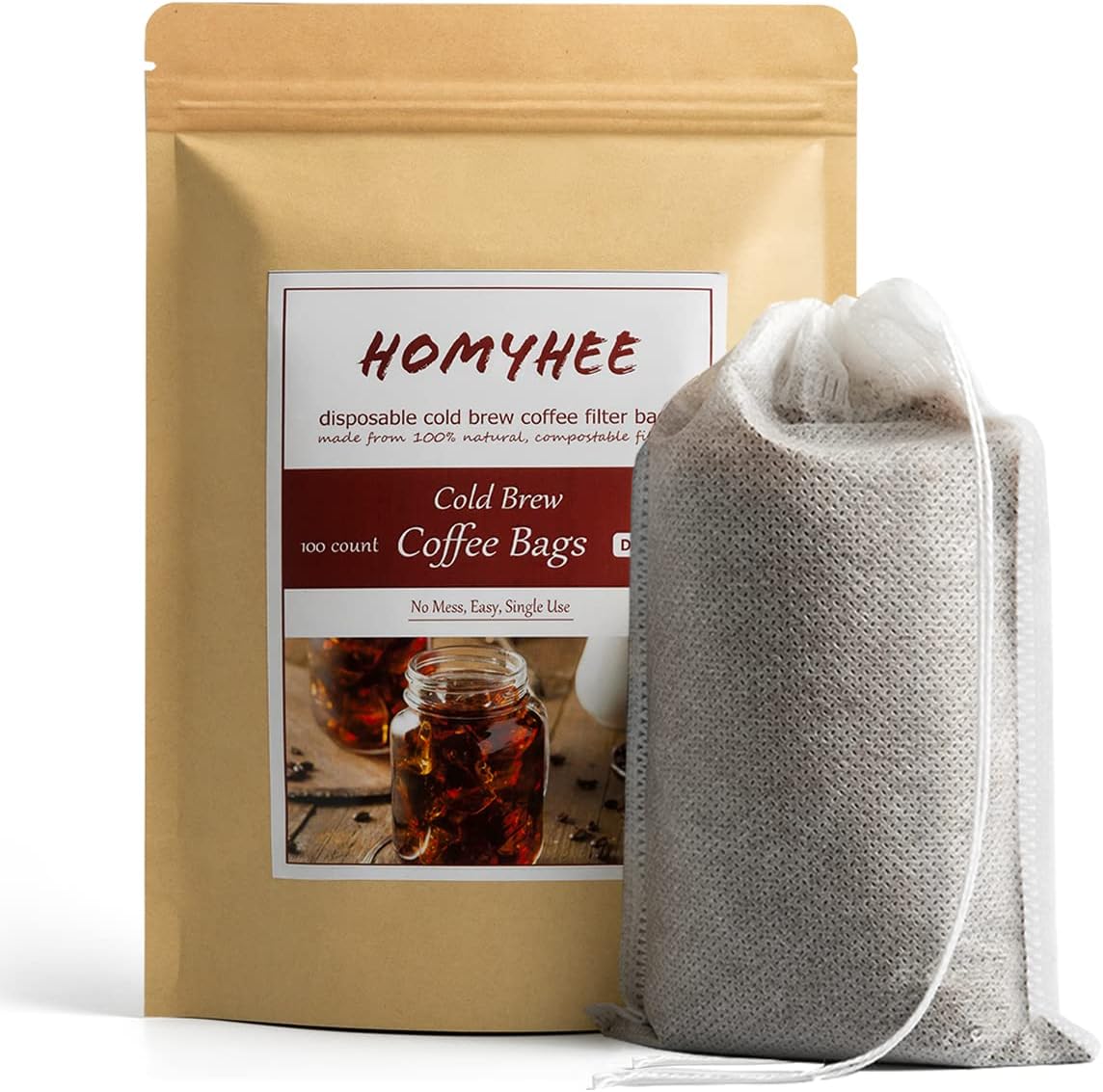 - Less Chunks - Each package contians 100 pcs of bags. Ultra fine mesh cold brew coffee bag means less sludge fines ending up in your coffee compared to plastic, cloth coffee sock or metal cold brew filters. The drawstring on each of our cold brew filter closes tight to retain all fine & coarse coffee grounds better than metal or plastic cold brew coffee makers.