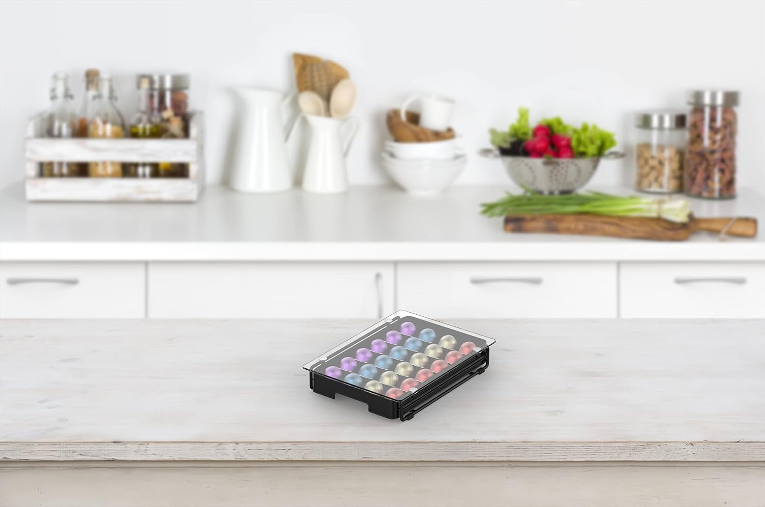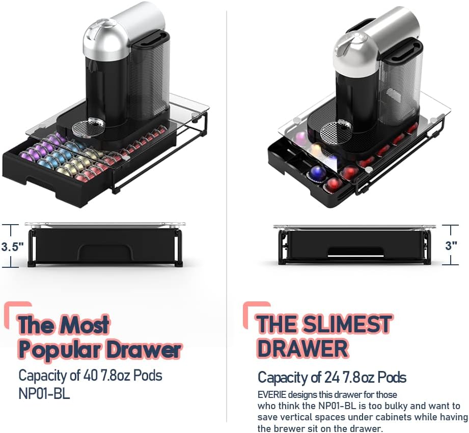 EVERIE 3'' SLIM Crystal Tempered Glass Organizer Drawer Holder Compatible with Nespresso Vertuo Capsules, Compatible with 24 Vertuoline Pods, NP06