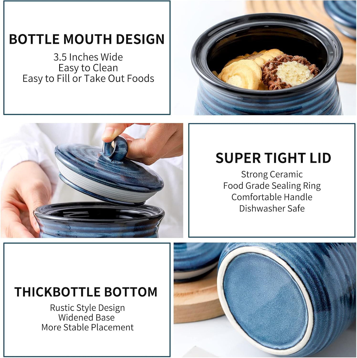 Hasense Ceramic Food Storage Jar, Coffee Canister with Lid, Cookie Candy Jar for Kitchen, Serving for Dog Treat Sugar Loose Tea Flour Coffee Beans Rice Snack Storage 30 FL OZ (Blue)