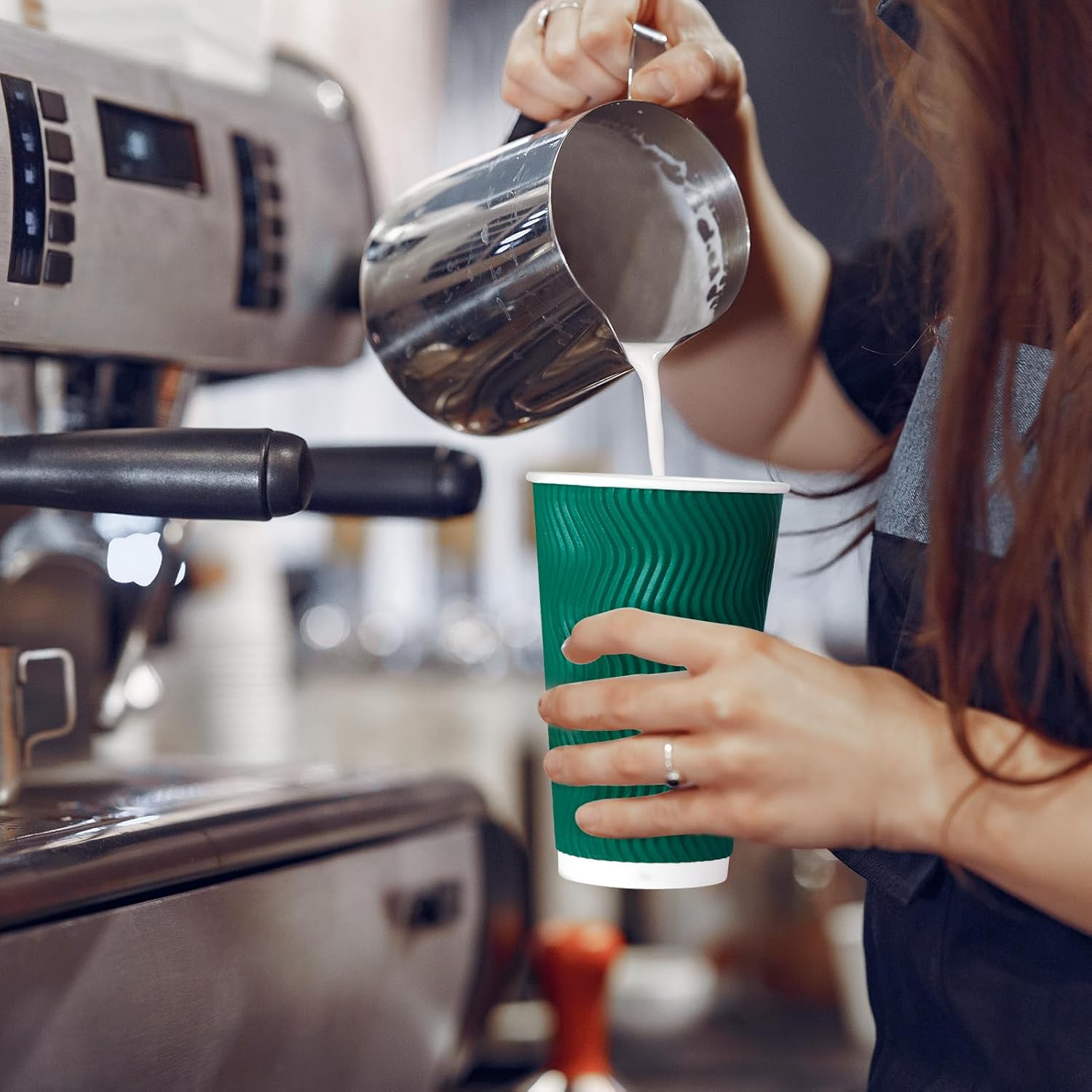 - Desingn: Each 16 oz disposable paper coffee cup is made of thickened paper, Kraft paper with color is pressed out in smooth ripple patterns for non slip grip and comfortable touch