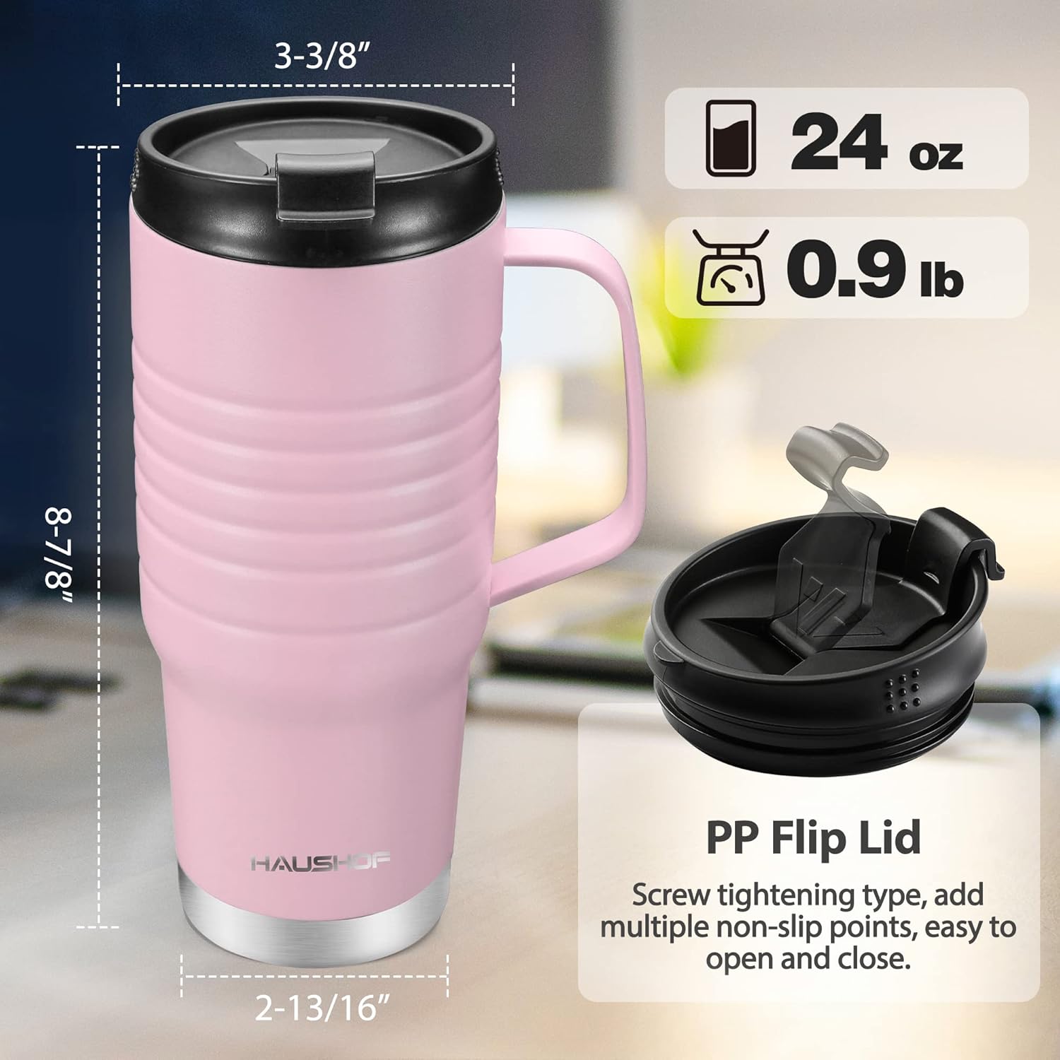 HAUSHOF 24 oz Travel Mug with Handle, Stainless Steel Vacuum Insulated Coffee Double Wall Travel Mugs with Leakproof Lid, BPA Free
