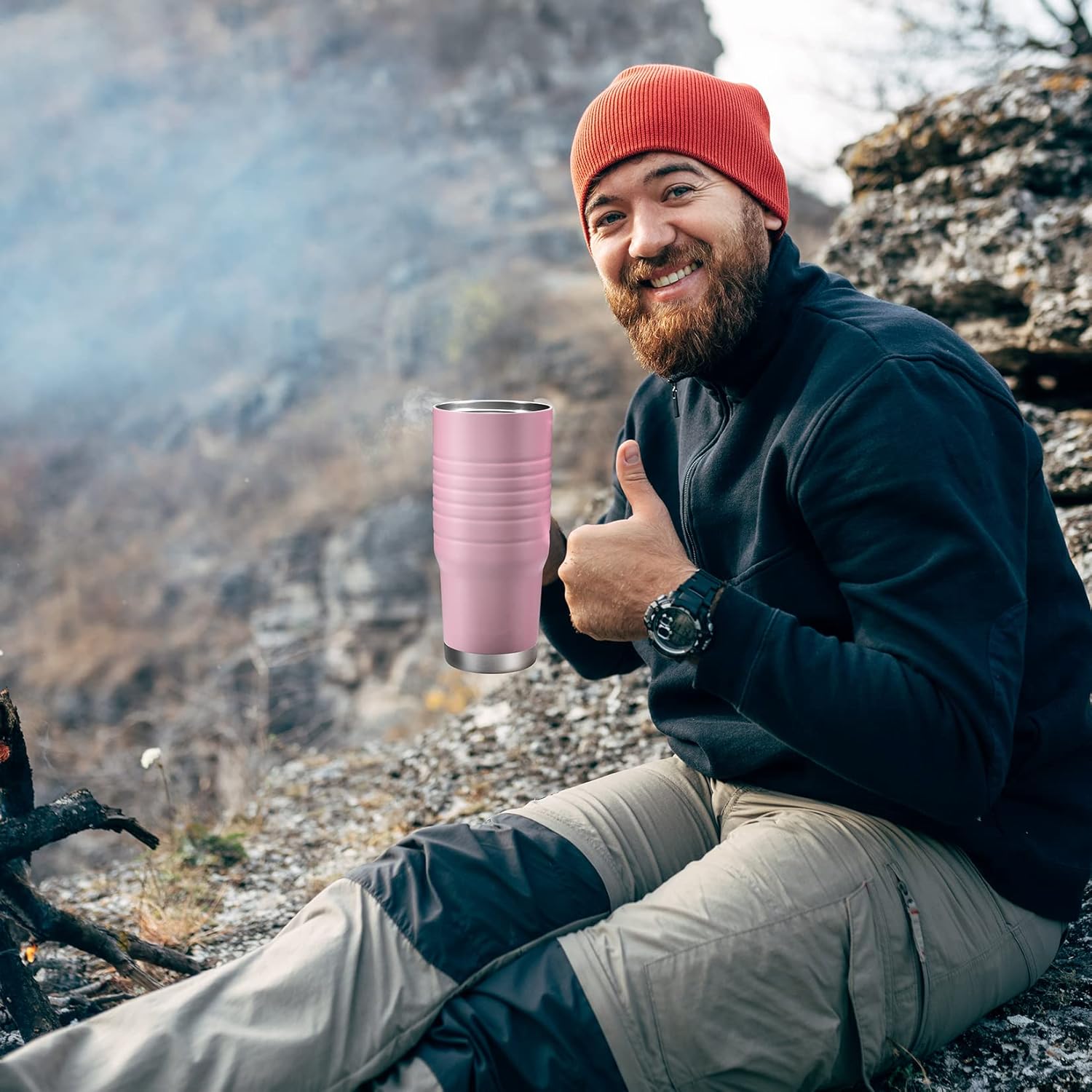 - DELAY TEMPERATURE LOSS: Double Wall Vacuum Insulated improves insulation and delays temperature loss; When you drink hot drinks, it doesn't burn the hand, and it can stay hot for more than 6 hours; When you drink cold drinks, the outer wall of the travel mug will not frost so it will not wet table, keeps cool time can reach 24 hours. ( NOTE: In the case of high temperatures in summer or cold in winter, keeping cool/staying hot time will be affected to some extent)
