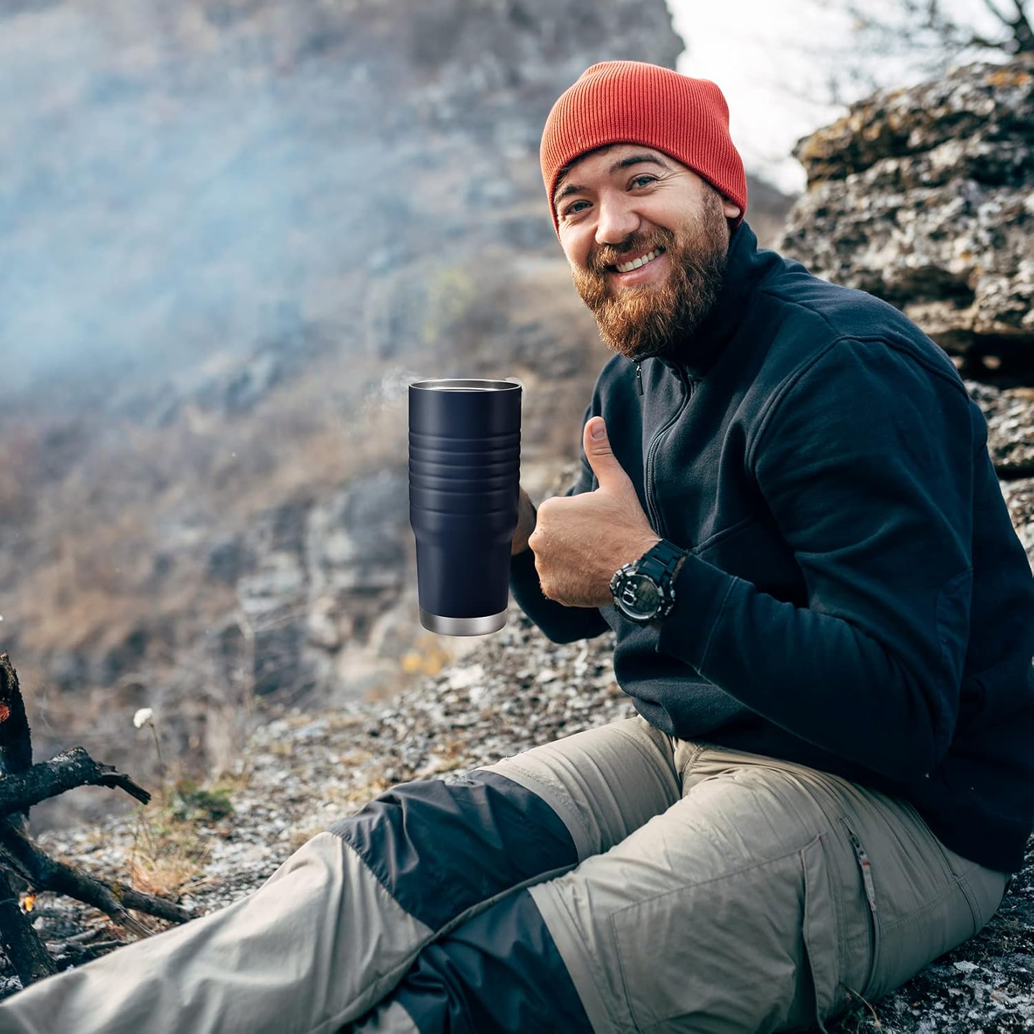 - A VARIETY OF COLORS FOR YOU TO CHOOSE: This 24 oz travel mug comes in 6 colors - White/Lake Blue/Green/Black/Pink/Navy Blue, the colored coating finish of the mug body is very textured, which is comfortable to hold and non-slip; This tumbler cup is an excellent gift for Mother's Day, Father's Day, Thanksgiving, or Christmas. The gorgeous colors also make it an excellent choice for holiday gifts