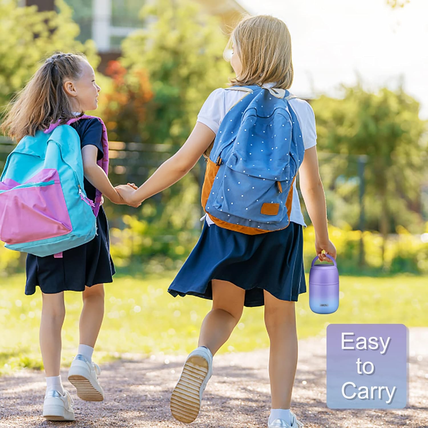 17 oz Insulated Lunch Containers Hot Food Jar, Wide Mouth Lunch Thermo for Hot Food Kids Adults, Vacuum Stainless Steel Thermo Lunch Box With Handle Folding Spoon for School, Office(Purple blue)