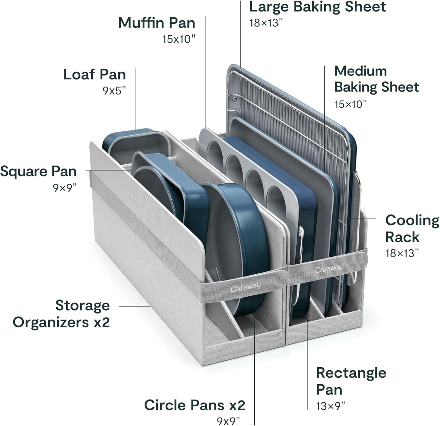 Caraway Nonstick Ceramic Bakeware Set (11 Pieces) - Baking Sheets, Assorted Baking Pans, Cooling Rack, & Storage - Aluminized Steel Body - Non Toxic, PTFE & PFOA Free - Navy