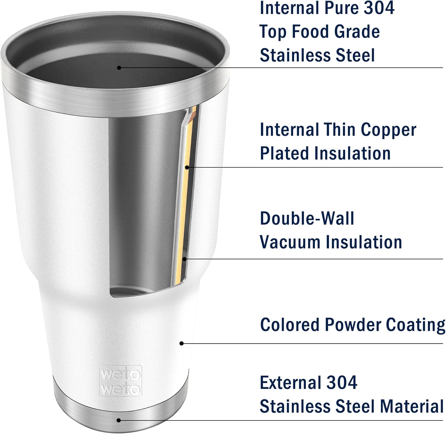 WETOWETO 30 oz Stainless Steel Tumbler, Insulated Coffee Tumbler Cup with 2 Lids and 2 Straws, Double Walled Travel Coffee Mug for Hot & Cold Drinks (White, 1 Pack)