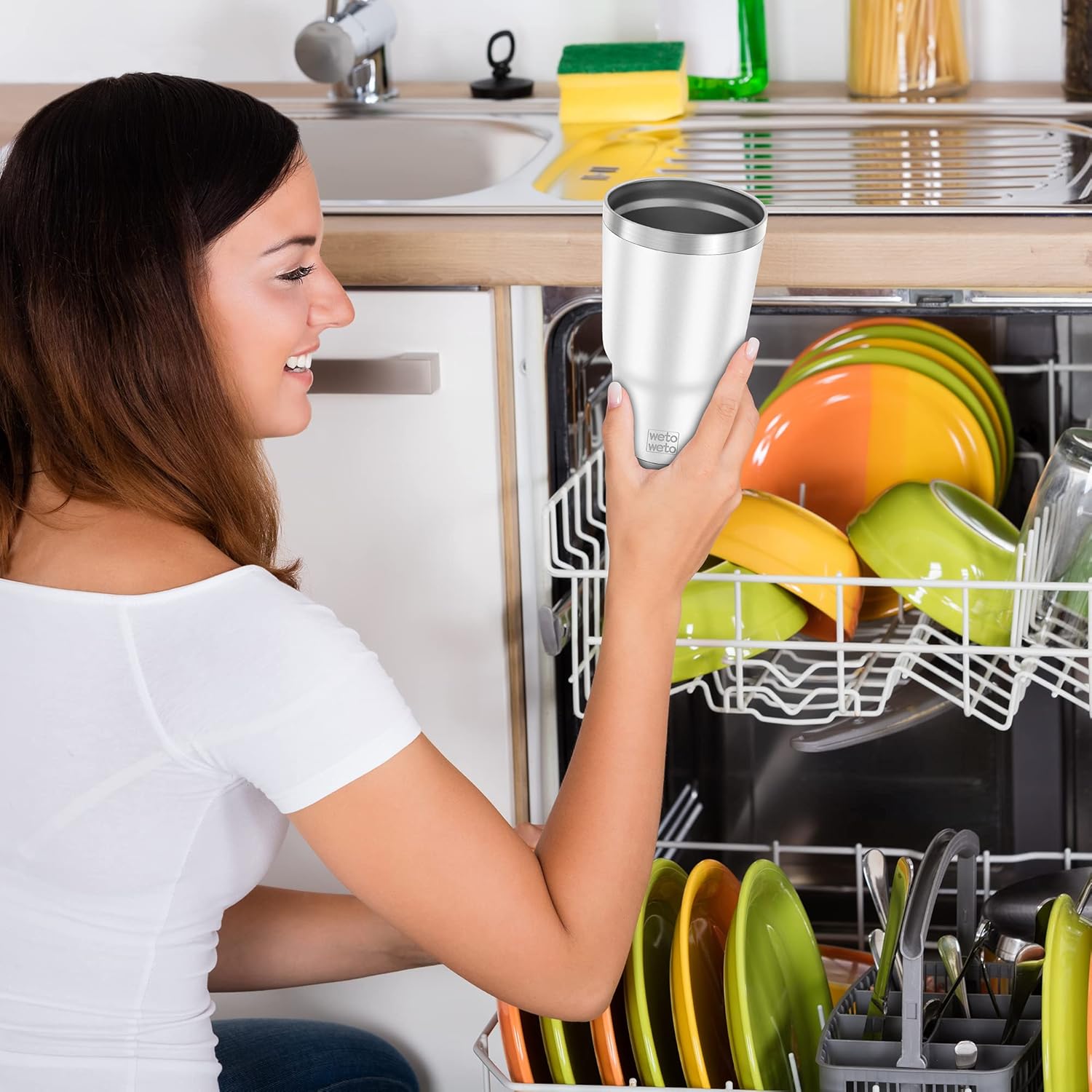 - [ 𝗗𝗶𝘀𝗵𝘄𝗮𝘀𝗵𝗲𝗿 𝗦𝗮𝗳𝗲 & 𝗘𝗮𝘀𝘆 𝘁𝗼 𝗖𝗹𝗲𝗮𝗻 ] - The vacuum travel mug has a wide mouth, which is very convenient to clean, and can also support dishwasher cleaning, no longer have to worry about the cleaning of the mug anymore. The coffee thermos comes with two lids that are BPA-Free, so you can use them as you like.