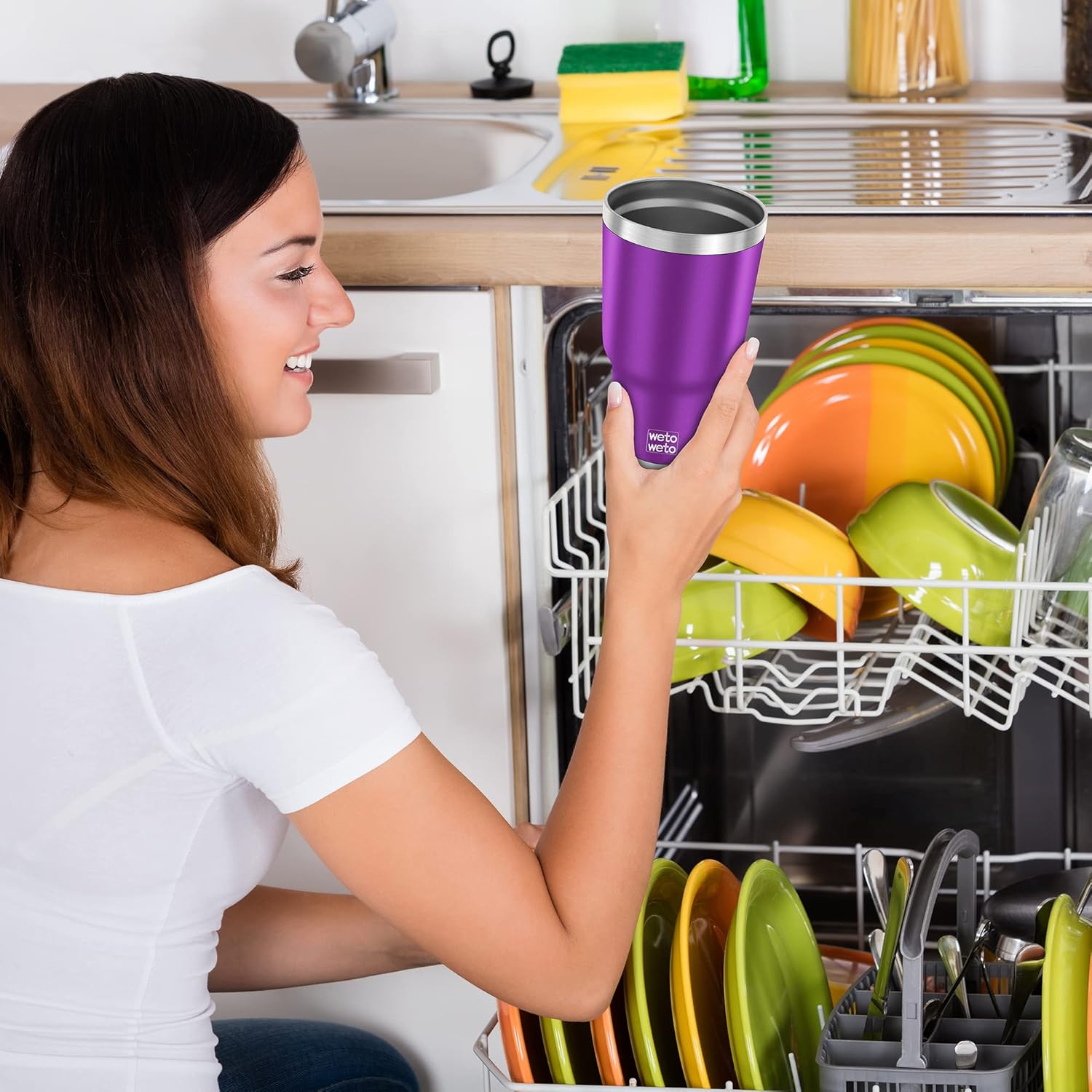 WETOWETO 30 oz Tumbler with 2 Lids and 2 Straws,18/8 Stainless Steel Vacuum Insulated Coffee Tumbler,Insulated Travel Mug Water Cup with Leak-Proof Straw Lid & Flip Lid (Purple, 1 Pack)