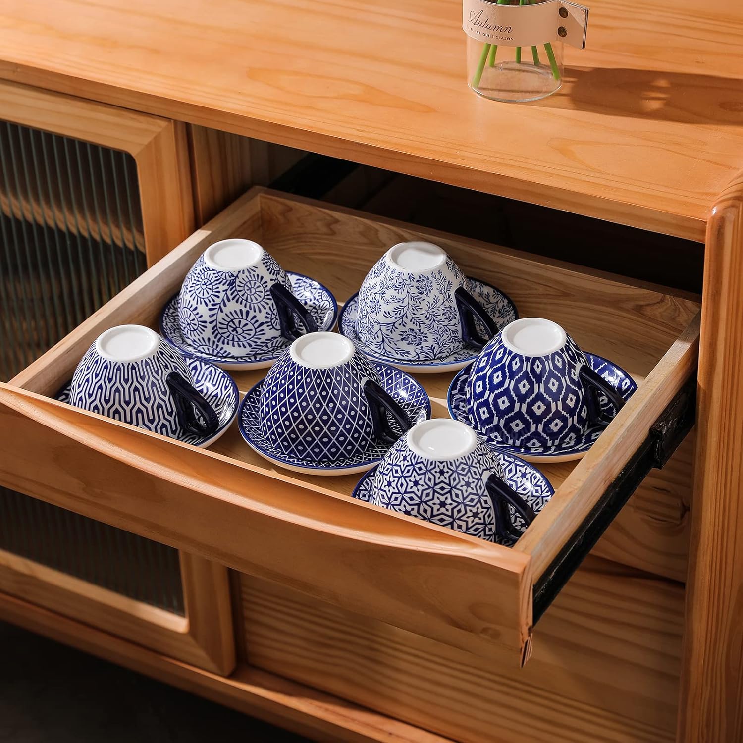 Selamica Ceramic 8 oz Cappuccino Cup Set with Saucers, Espresso Coffee Cups, Latte Macchiato for Party Cafe Home, Set of 6, Vintage Blue