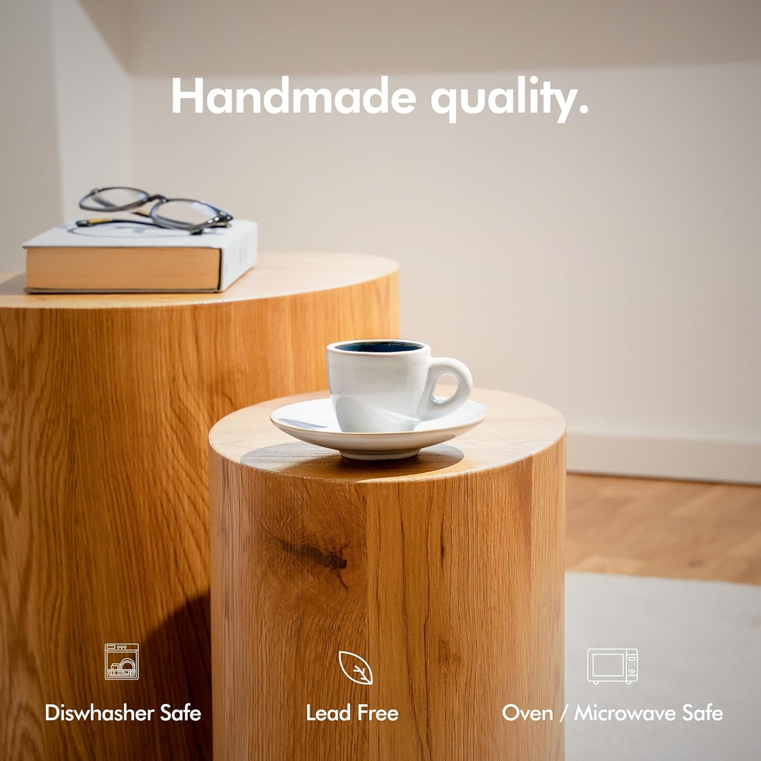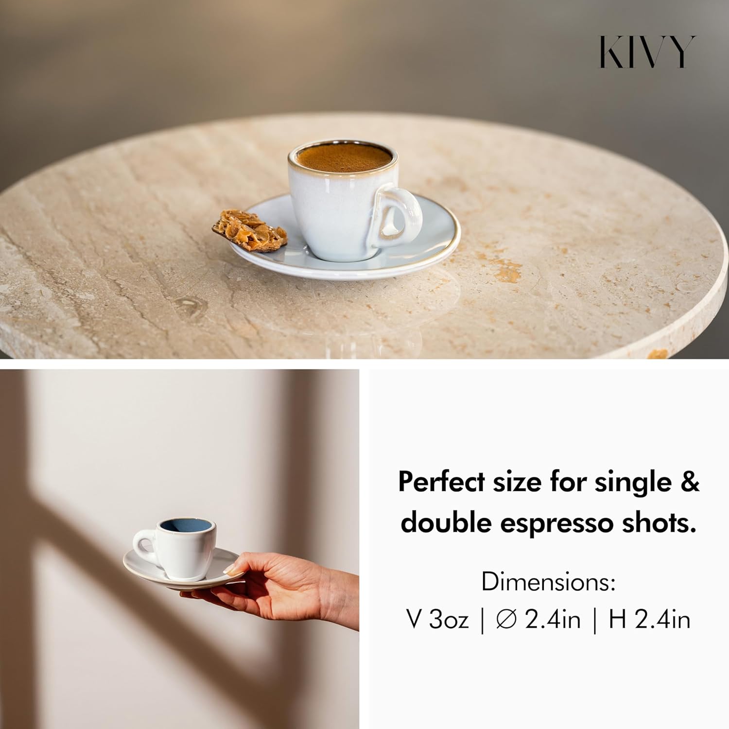 KIVY 3 oz Espresso cups set of 4 - Thick walled stoneware espresso cup set - Italian style espresso cups and saucers - Expresso shots cup - Small coffee mugs and saucers - Blue