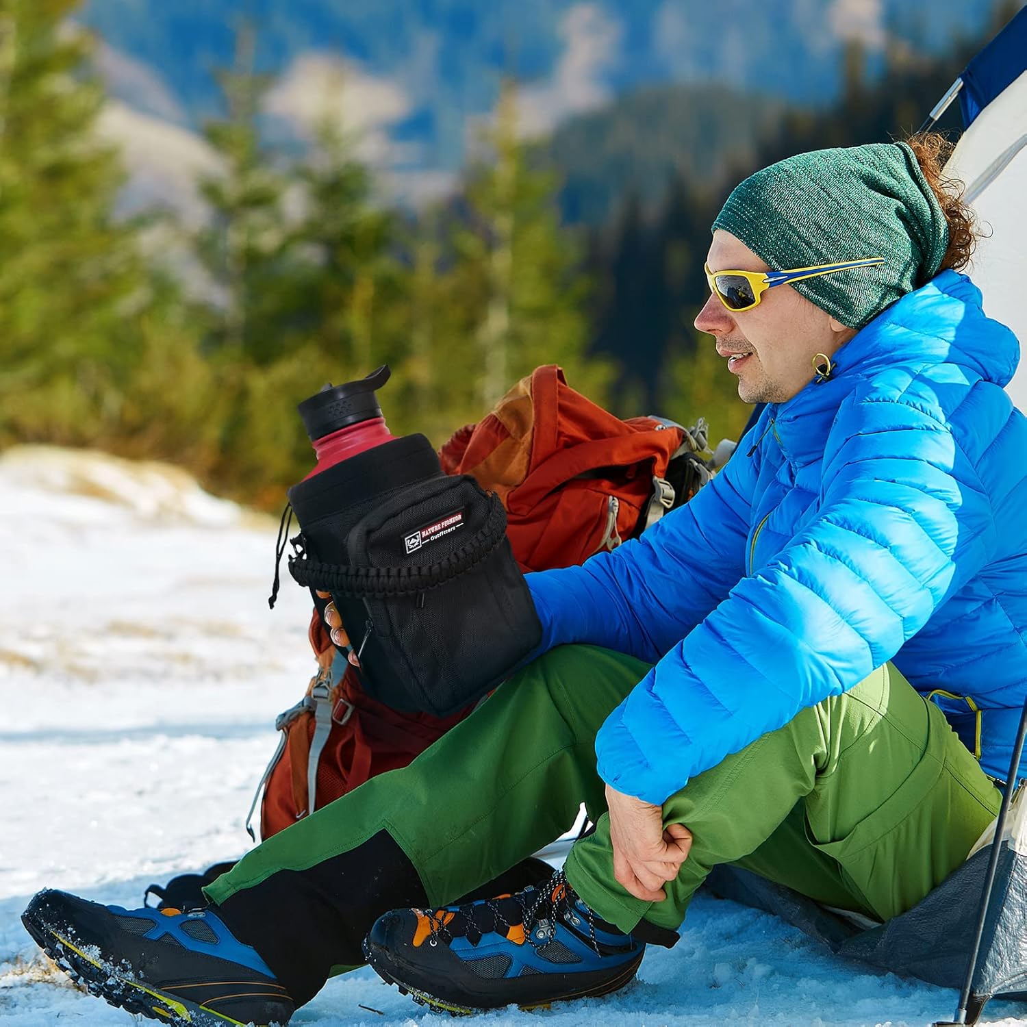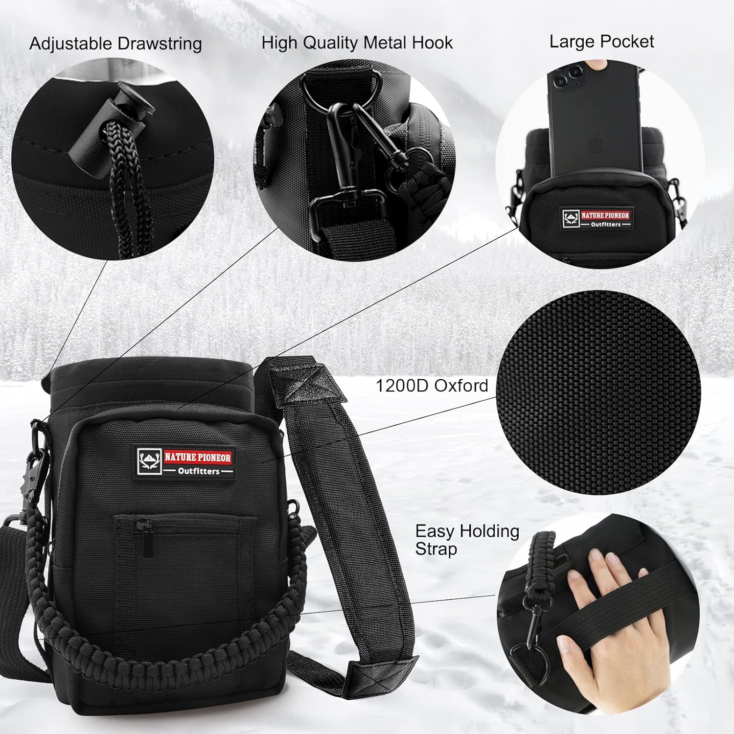 - 【Portable Water Bottle Holder】 – To make carrying easier, this water bottle comes with a handmade paracord handle and adjustable shoulder strap for hands-free convenience. The holder includes a zippered storage pocket for small items like keys, cards, or snacks, and a side hook for accessories. Whether you’re going on long hikes, outdoor adventures, or traveling, this bottle + carrier set offers both functionality and style