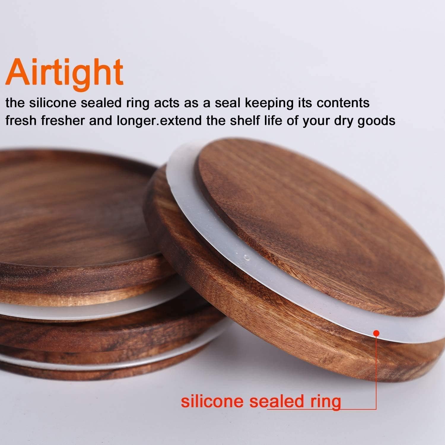 - Airtight Glass Jars:The airtight wooden lid has a silicone sealed ring,the silicone sealed ring acts as a seal keeping its contents fresh.perfect for storing coffee beans,ground coffee,brown sugar,loose leaf tea,cocoa,grains,corn,oatmeal,cereal,etc.