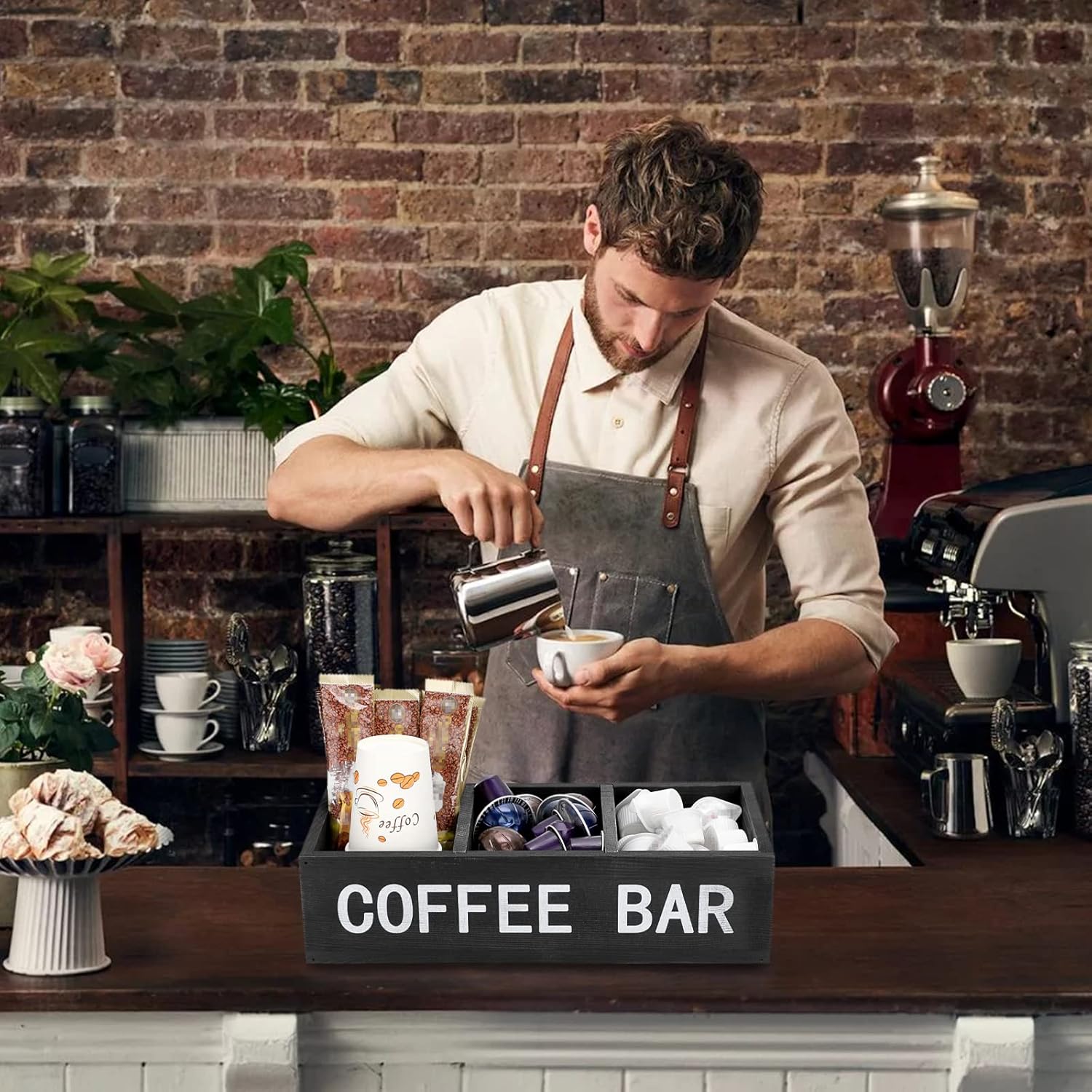 - Perfect Coffee Station - This coffee pod decoration box can be placed in the coffee bar, motel service area, home kitchen counter, office and so on.The coffee bar decor box makes the condiments look great and can be used as a coffee station to welcome guests