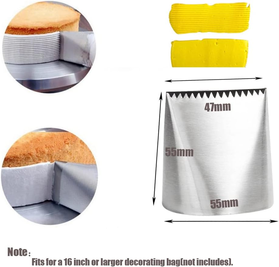 - TIME SAVING PIPING TIP:Huge size for quickly crumb coating,smoothing a cake and frosting on cake,cuts icing time by more than half.Great for decorating cakes, cupcakes, cookies, and more.