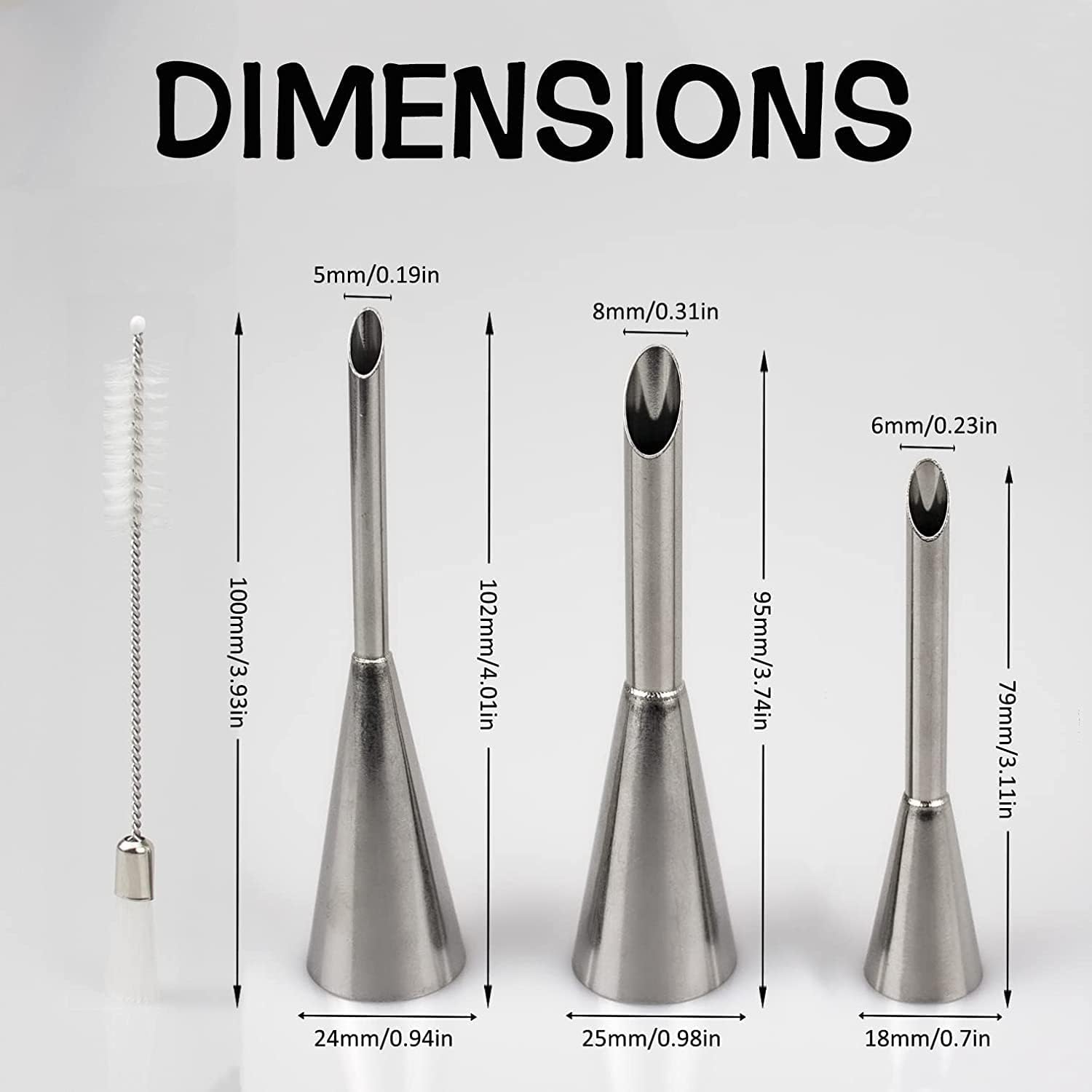 - DONUT FILLER PIPING TIP:Great doughnuts piping tips in 3 different sizes(dimameter: 5mm, 6mm, 8mm)to meet your various needs for cream filling.