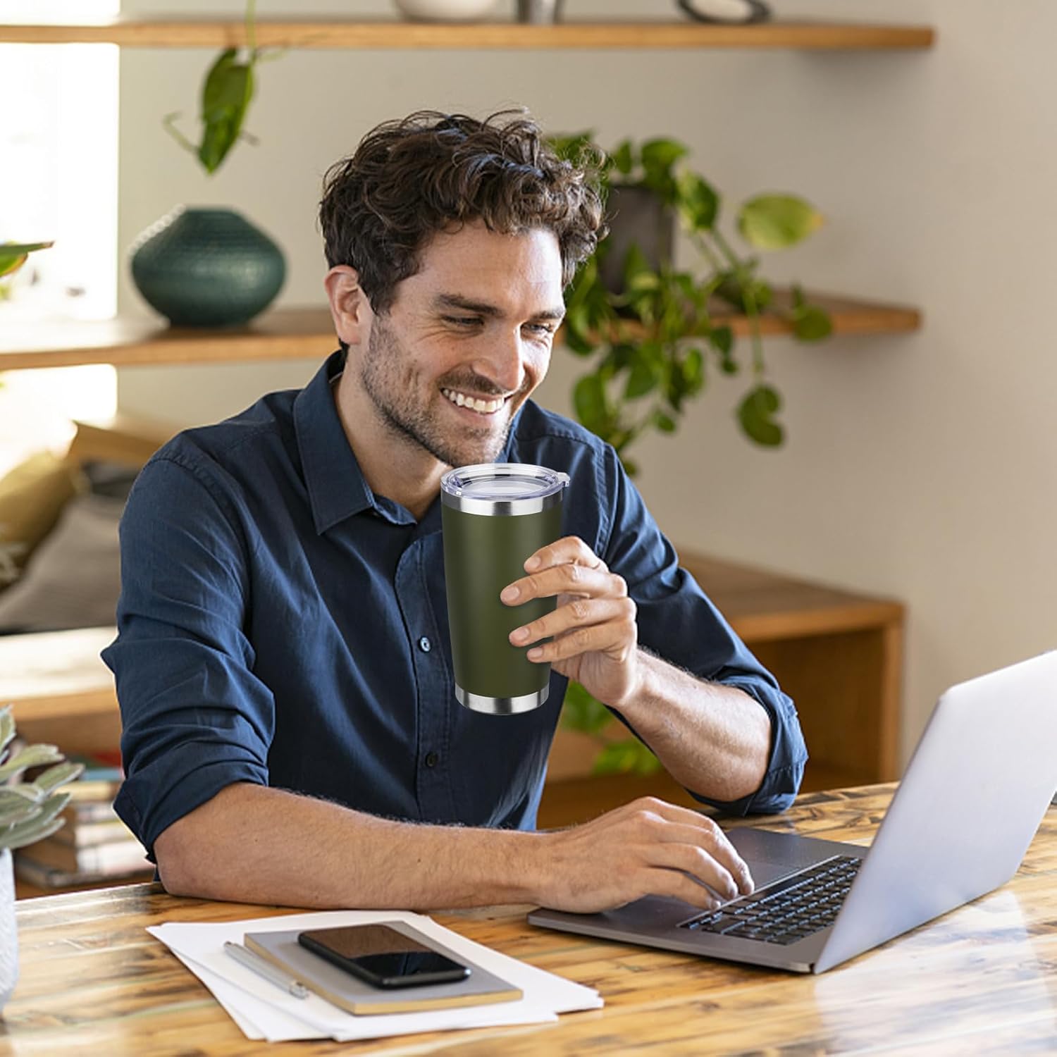 - Fits Most Cup Holders: 20oz coffee travel mug body height is 6.69",the drink-through lid diameter is 3.38". It also fits in the most car drink holder, Carry around your beverages whether home, office, picnic, hiking or camping adventures