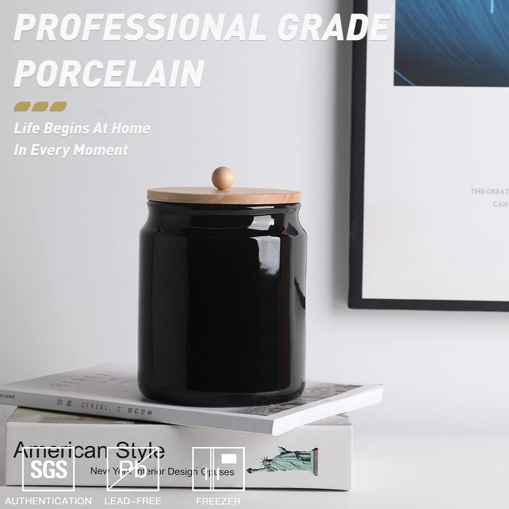 Sweejar Ceramic Kitchen Canisters, 58 FLOZ Porcelain Food Storage Jar with Airtight Seal Wooden Lid, Home Container Serving for Coffee Beans, Tea-leave, Sugar, Salt and More, Tool Bucket (Black)
