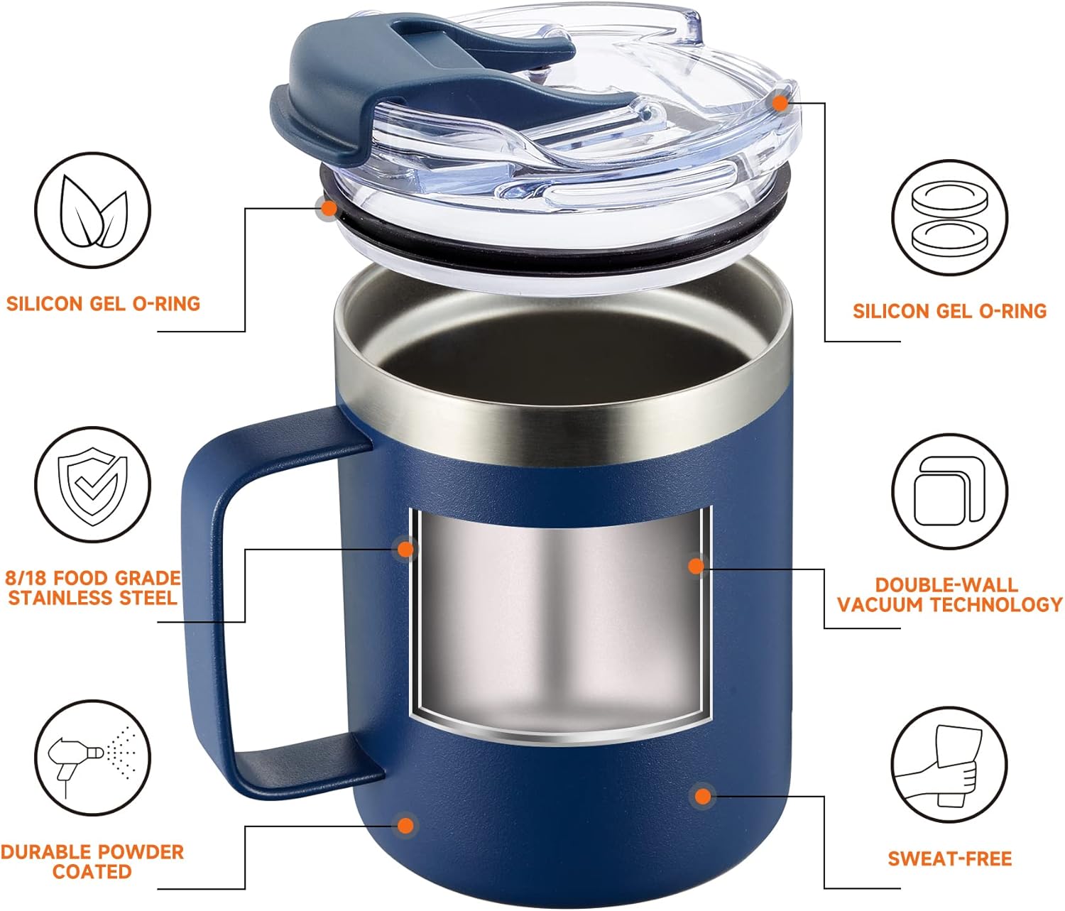 ALOUFEA 12oz Insulated Coffee Mug Cup with Handle, Stainless Steel Travel Coffee Mug with Flip Lid, Double Wall Vacuum Coffee Tumbler, Navy