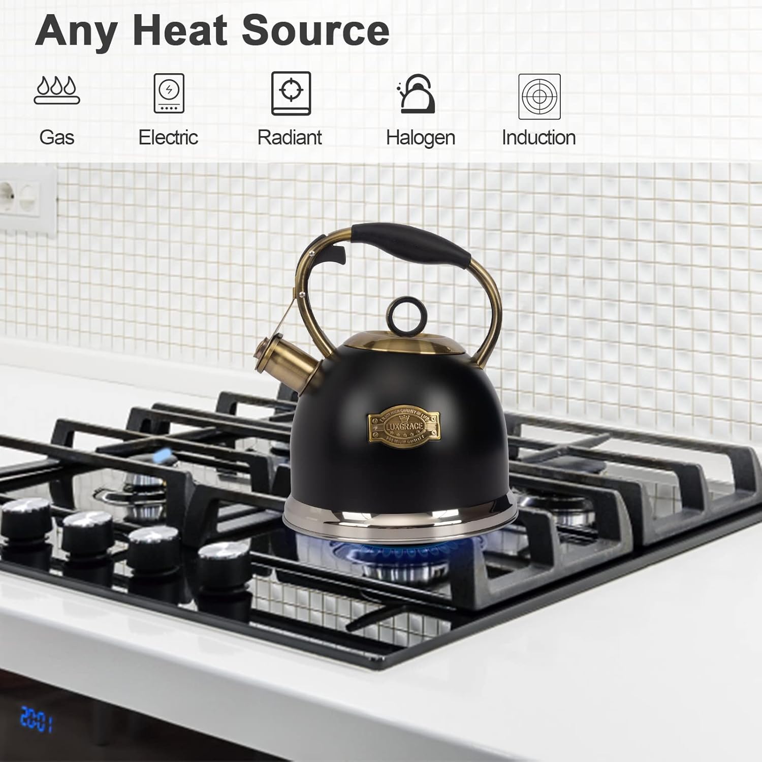 - Perfect Whistling Sound of Teakettle: This tea kettle for stovetop has a tight-fitting lid keeps steam in the hot tea kettle for rapid heating, and realse pleasant whistles sound when water reaches a boil, Loud enough to alarm you when you busy in the next room.